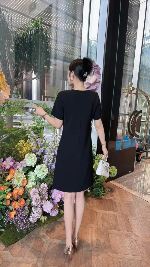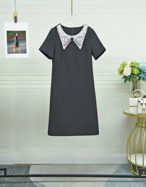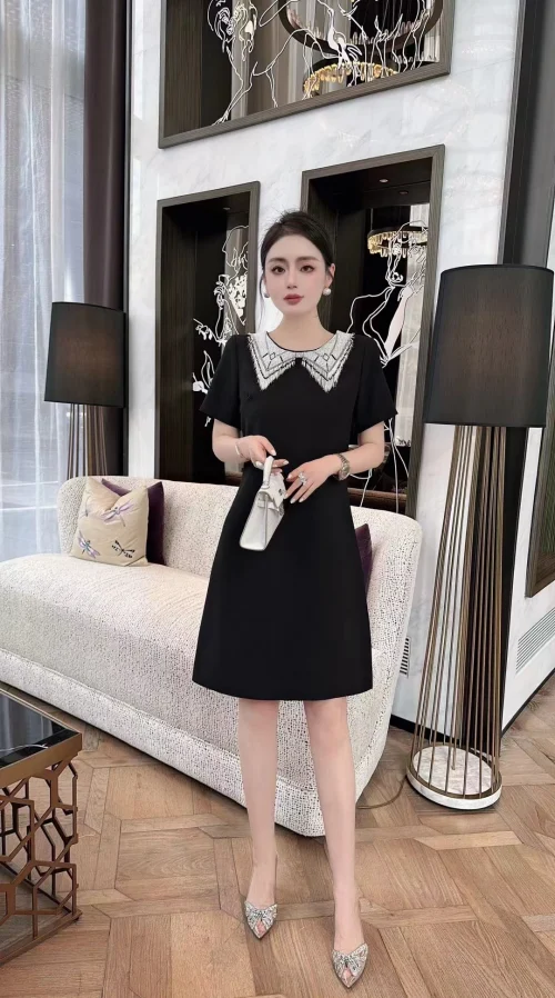 Product Name: Luxury Dress 2024 Summer Party Women Hand Made Beading Tassel Deco Short Sleeve Straight Elegant Black White Dress Office Lady