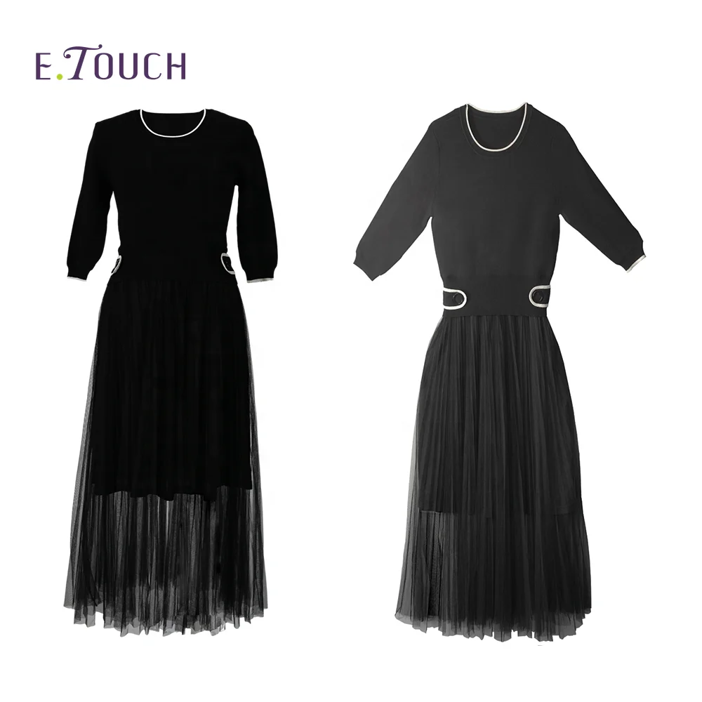 Luxury Temperament Knitted Casual Summer Crew Neck Short Sleeves Elegant Long Party Fashion Dress