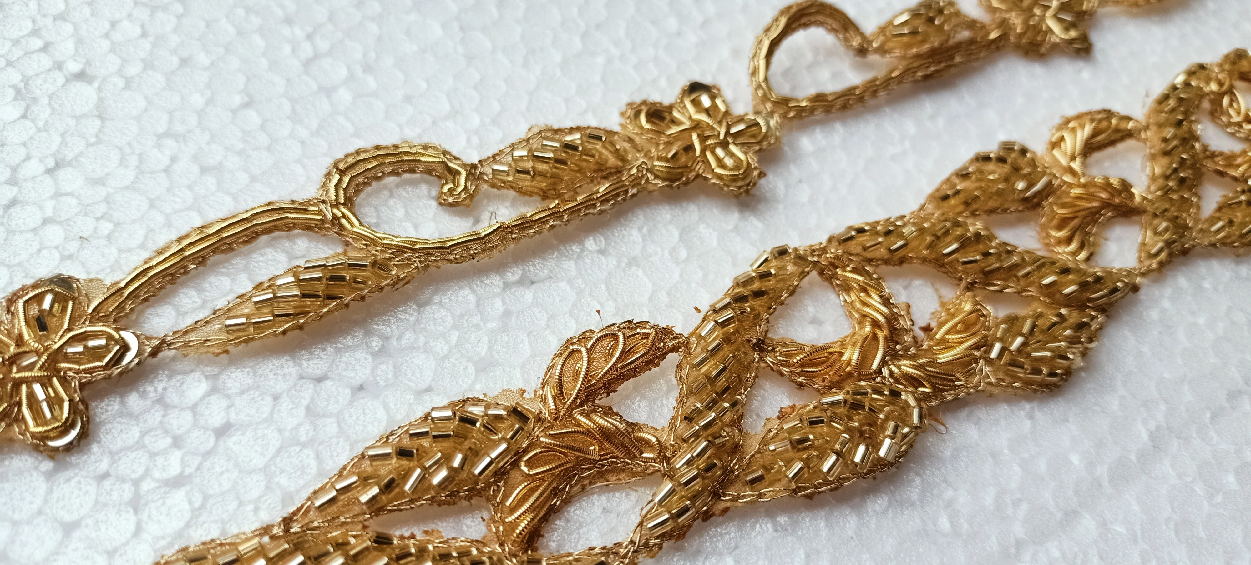Made Beaded Hand Embroidered Cut Work Laces Ideal for Use As Borders and Trims on Clothing