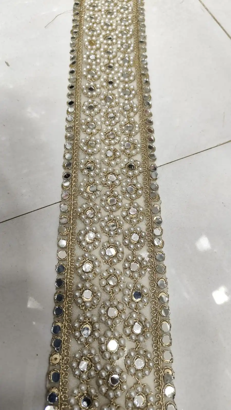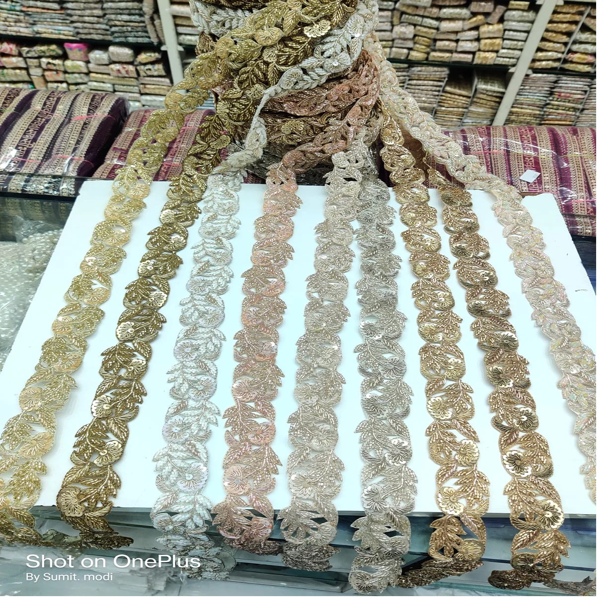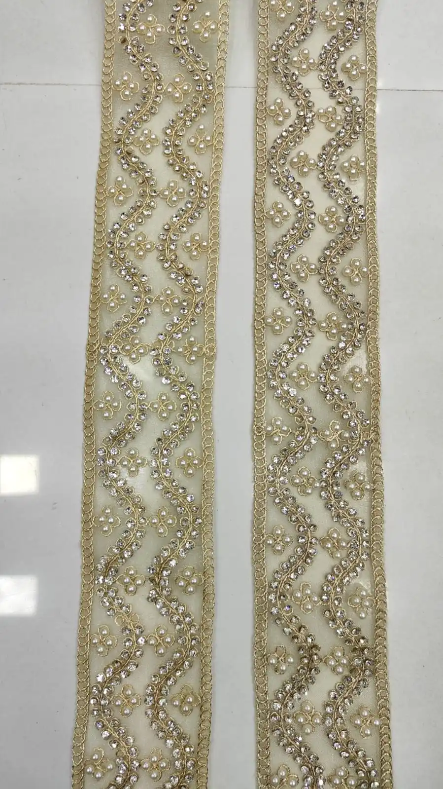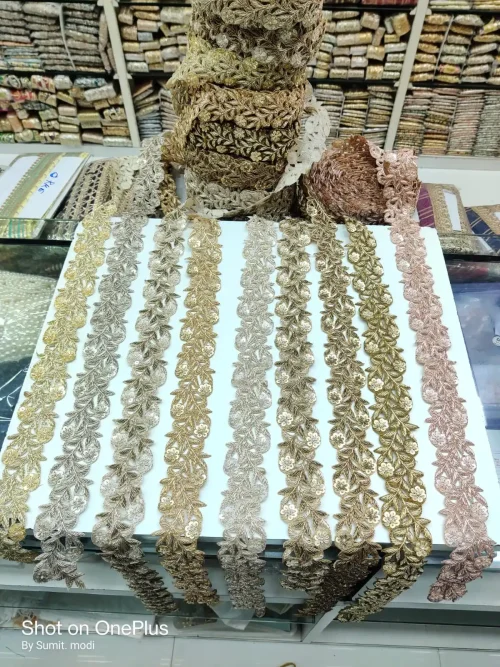 Product Name: made hand embroidered khat work laces in floral designs and in nine colours for wedding dresses and for resale.