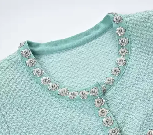-Made Mint Green Knitted Dress French Style High-End Sweater Dress Pleated Short Sleeves Button Eco-Friendly Natural