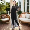 Colia Diamante Mesh Corset Satin Maxi Dress – Black