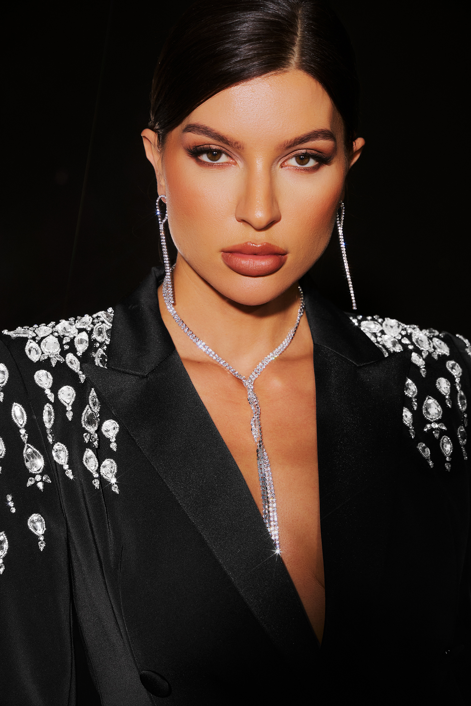 Megan Deep V Diamond Setting Suit Dress