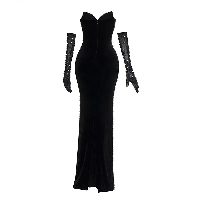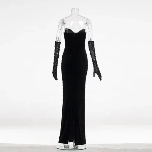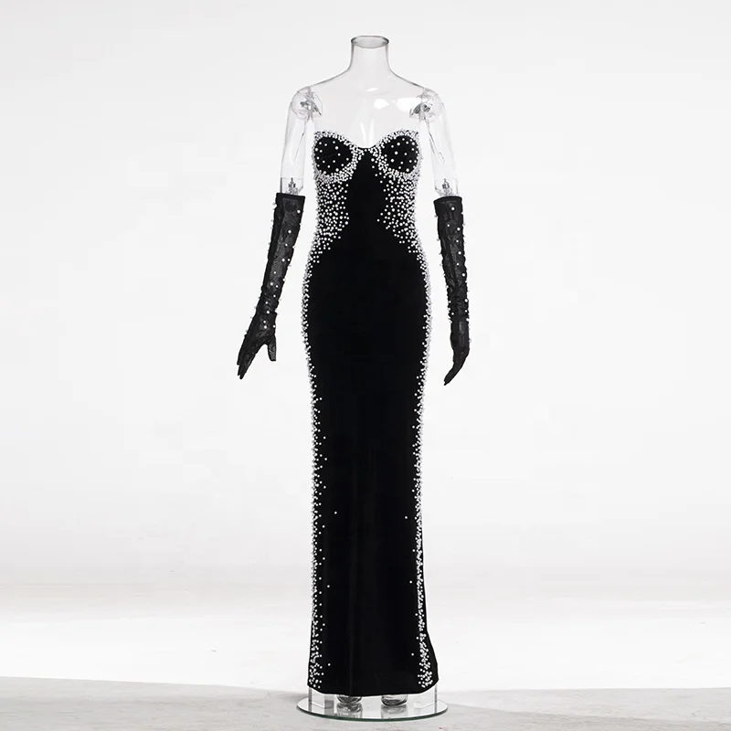 Mermaid Floor-Length Off-the-shoulder Beaded Sexy Embellished Evening Gown Coral Luxurious Club Prom Trendy Evening Dress