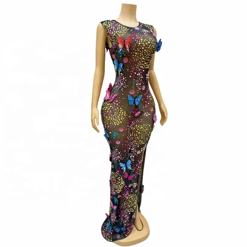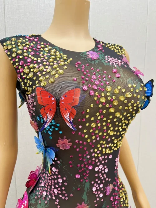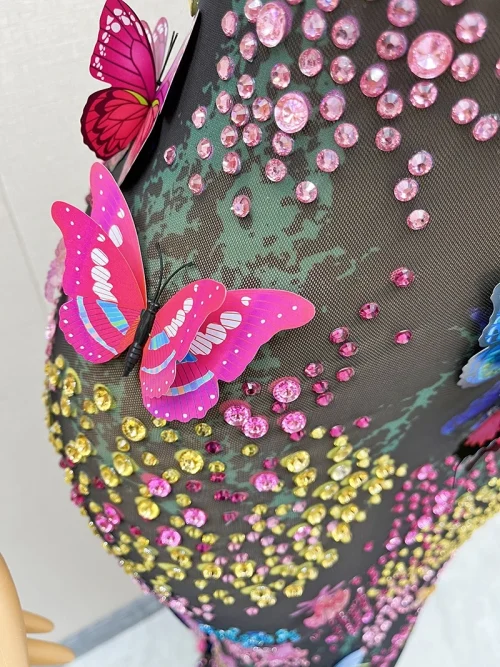 Mesh See Through Colorful butterfly Crystal Evening Dresses Lace Evening Dresses Women’s Clothing Autumn 2024