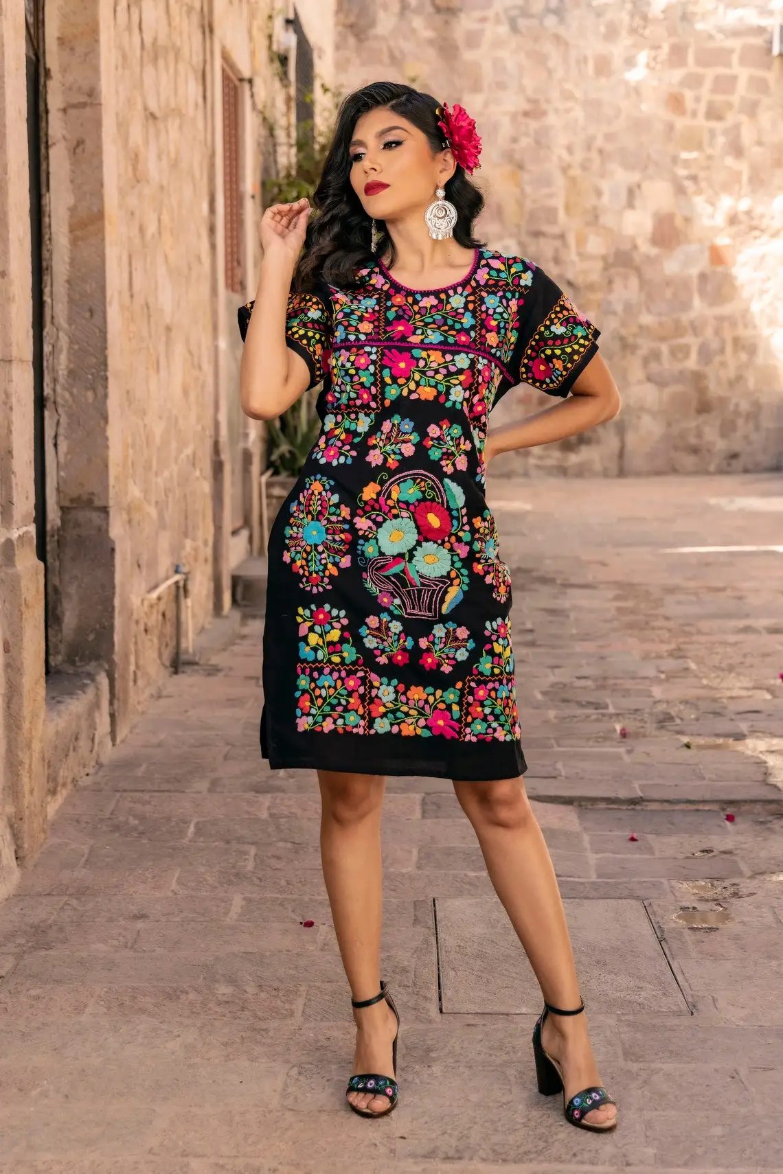 Mexican Floral Embroidered Midi Skirt for Women Traditional Dress Cinco De Mayo Fiesta Style Outfit New Style Hawaiian Wear 2025
