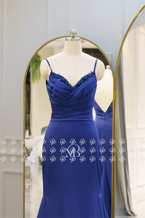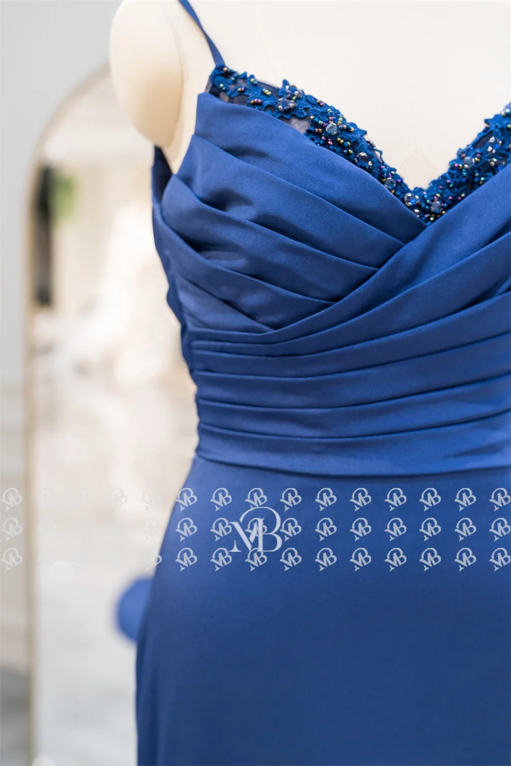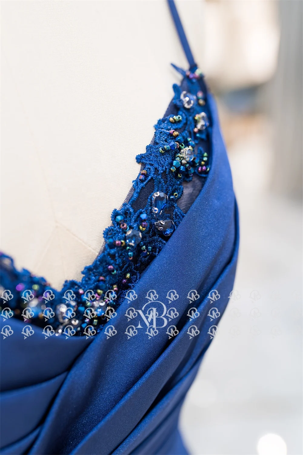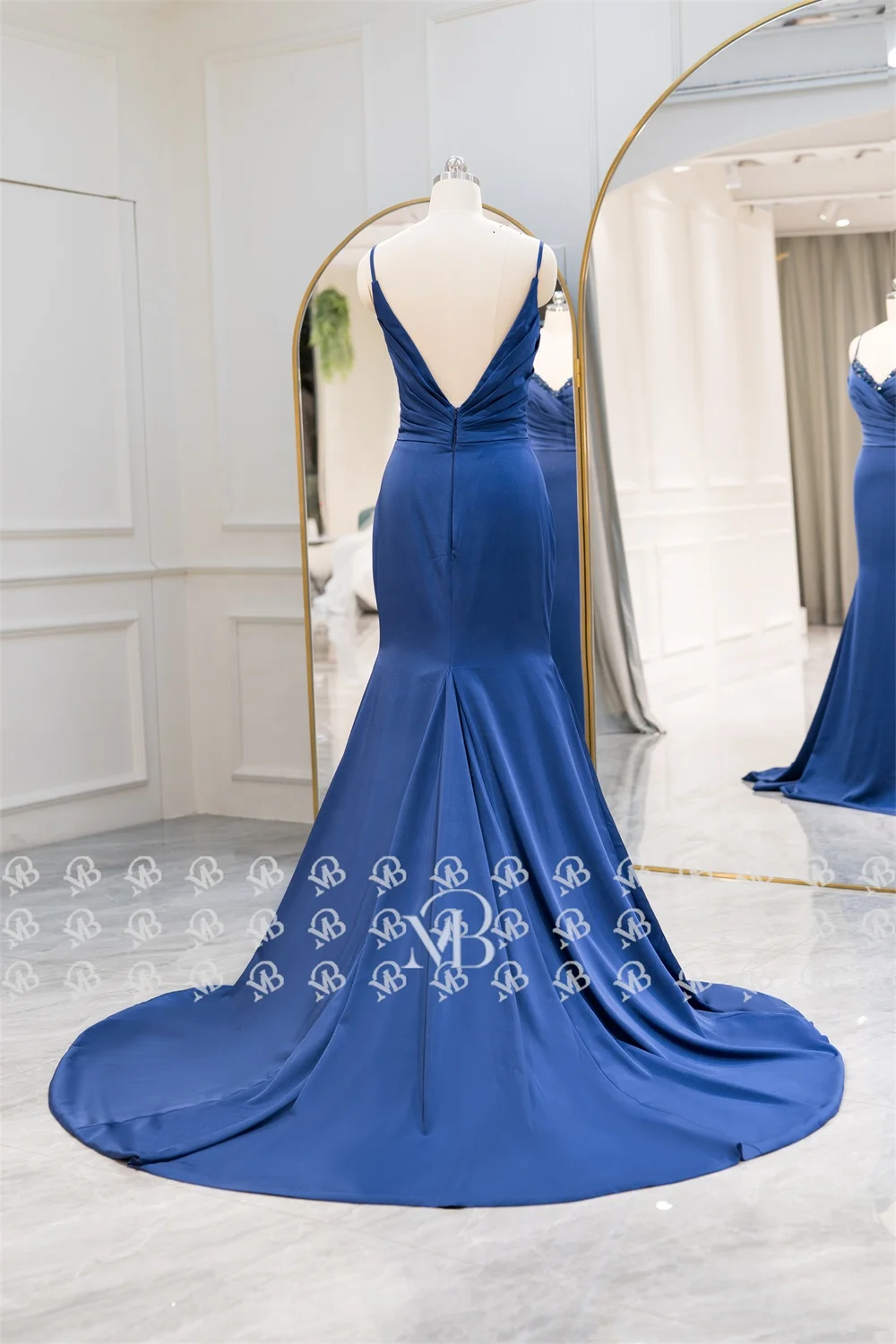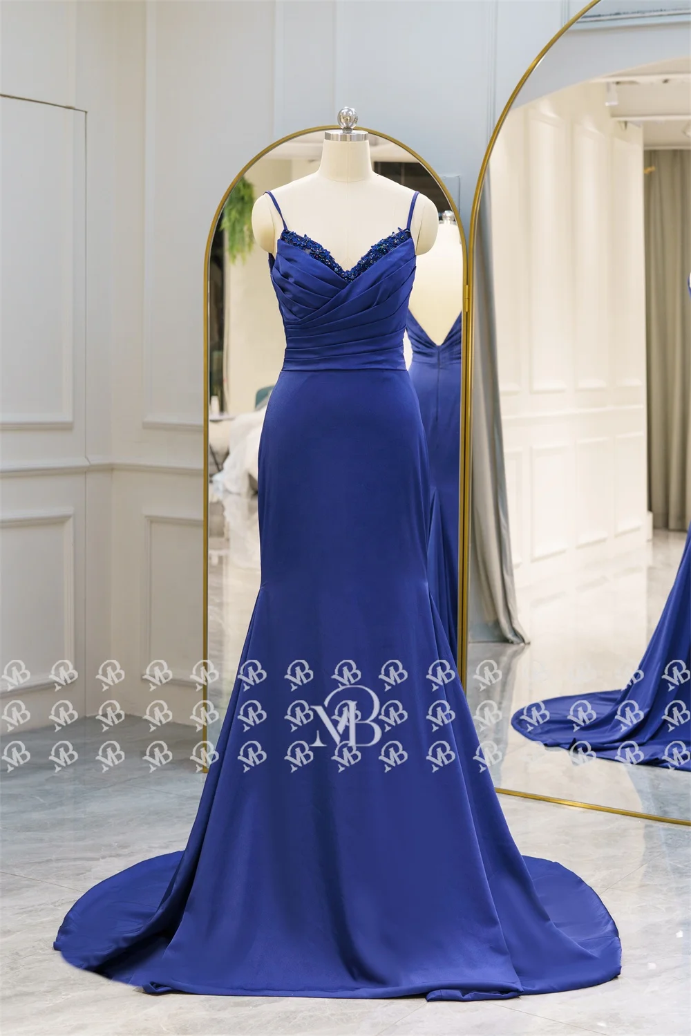 Mily Bridal LDC6632 Spaghetti Strap Sexy Beaded Work Laced Evening Gowns for Women Mermaid Sexy Blue Backless Party Dresses
