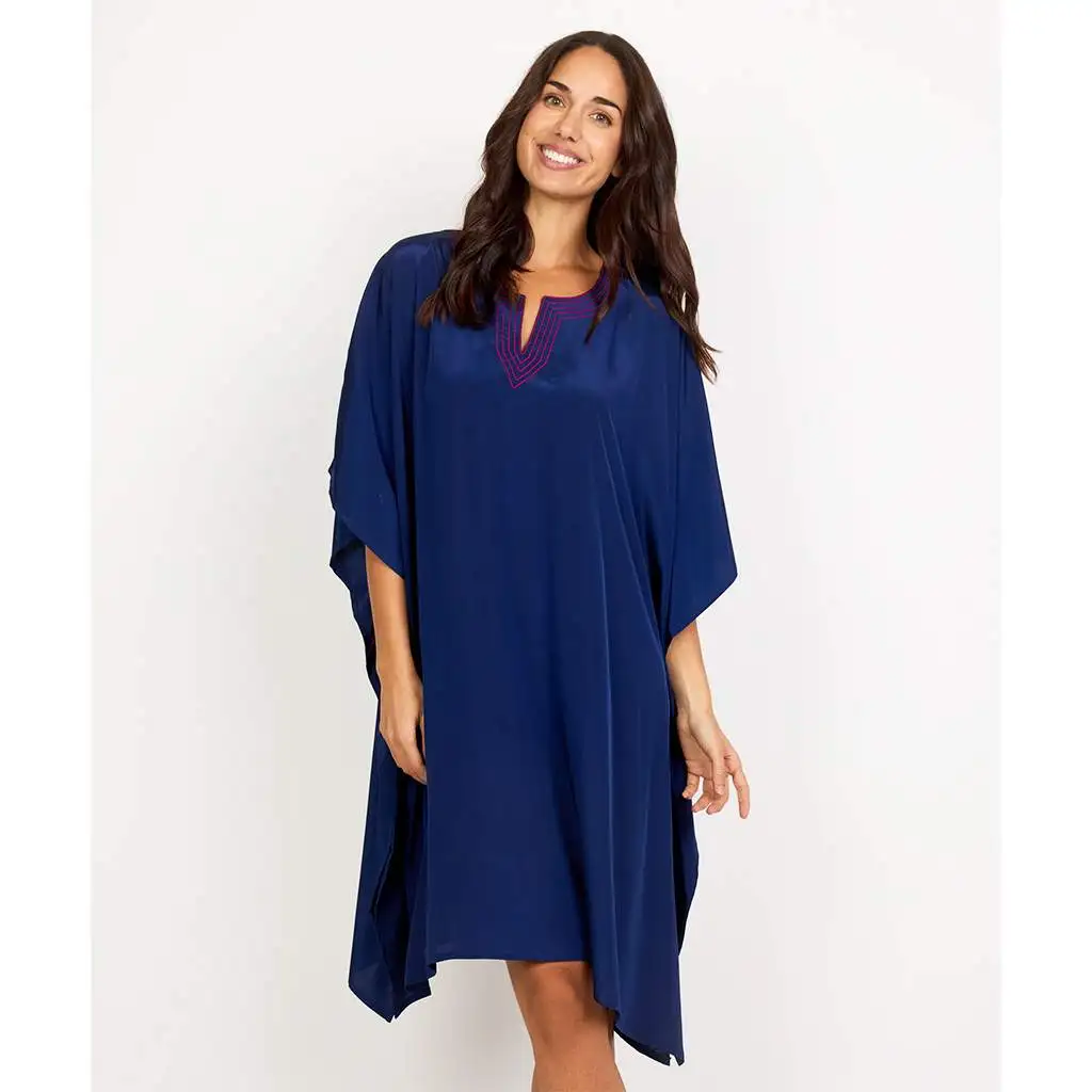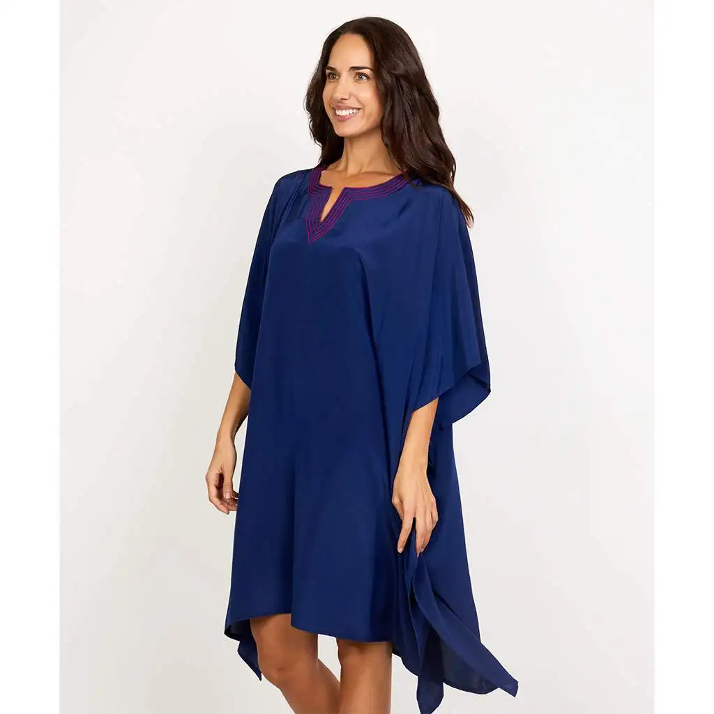 Navy Blue Kaftan with Elegant Draped Design Casual Trendy Plus-Size Floor-Length Dress for Daily Casual Summer Beach ODM Supply