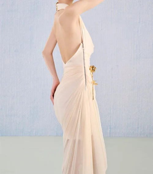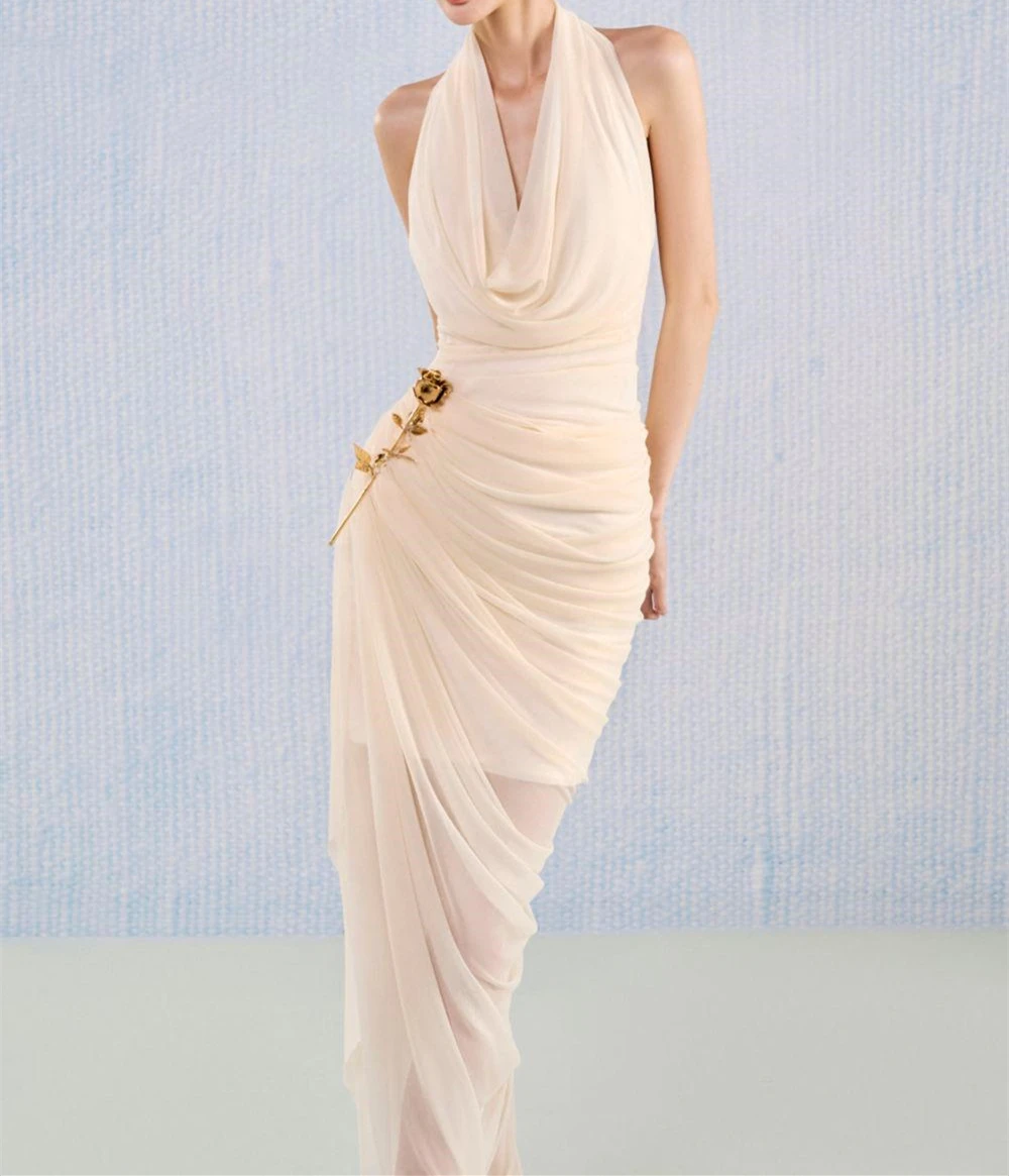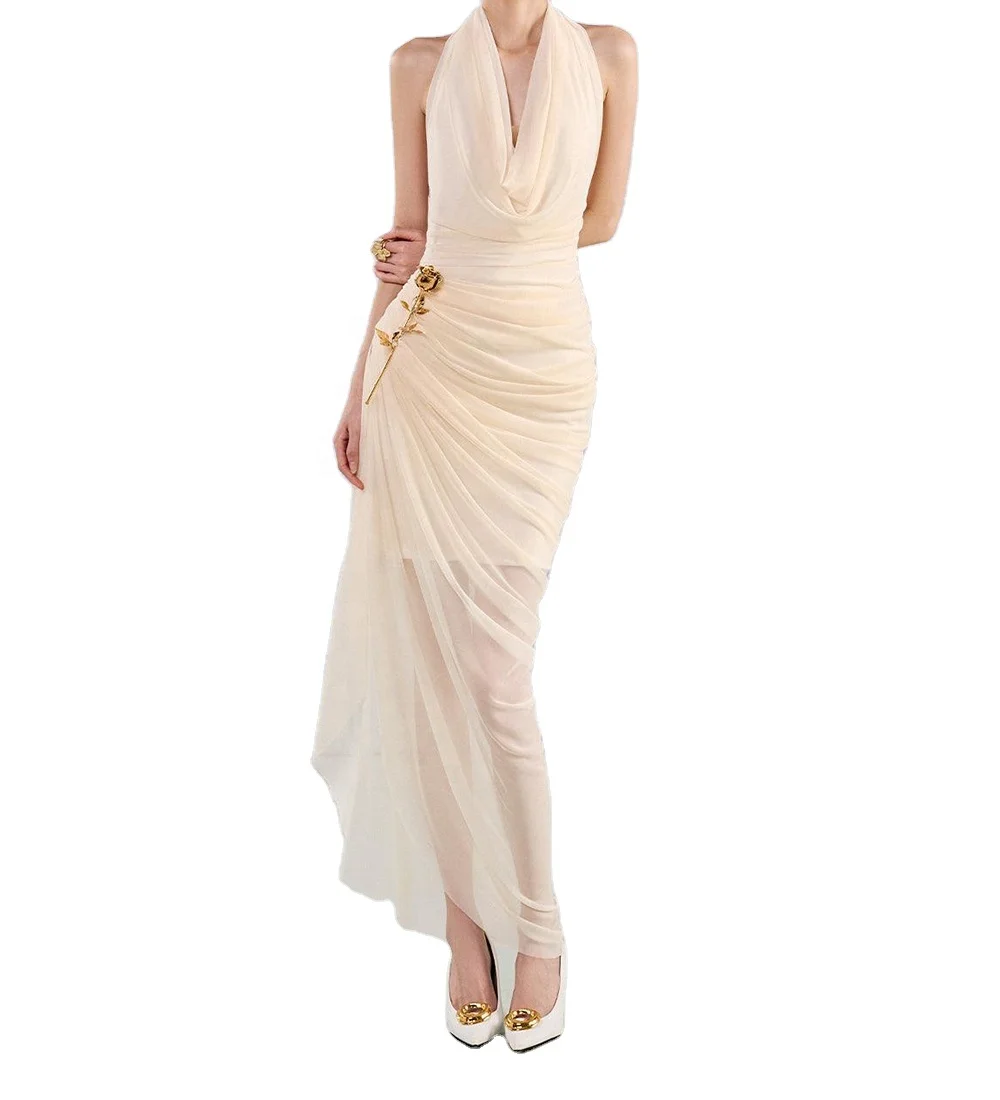 New Arrival Elegant Asymmetric Cowl Neck Viscose Ankle Length Dress Women Dress