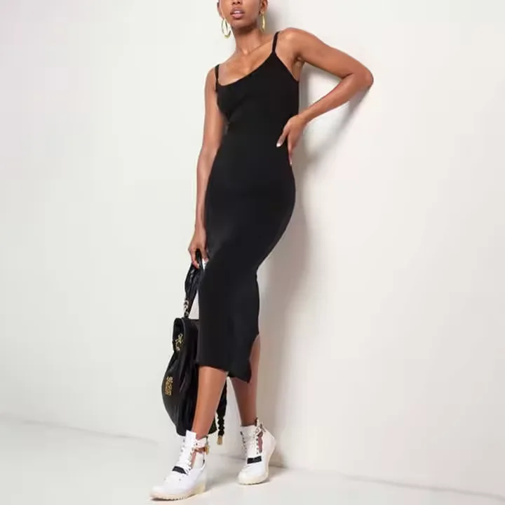 Product Name: New Arrival Summer Dress Simple Casual Sexy Thin Strap Elastic Cotton Solid Color Maxi Bodycon Dress Women
