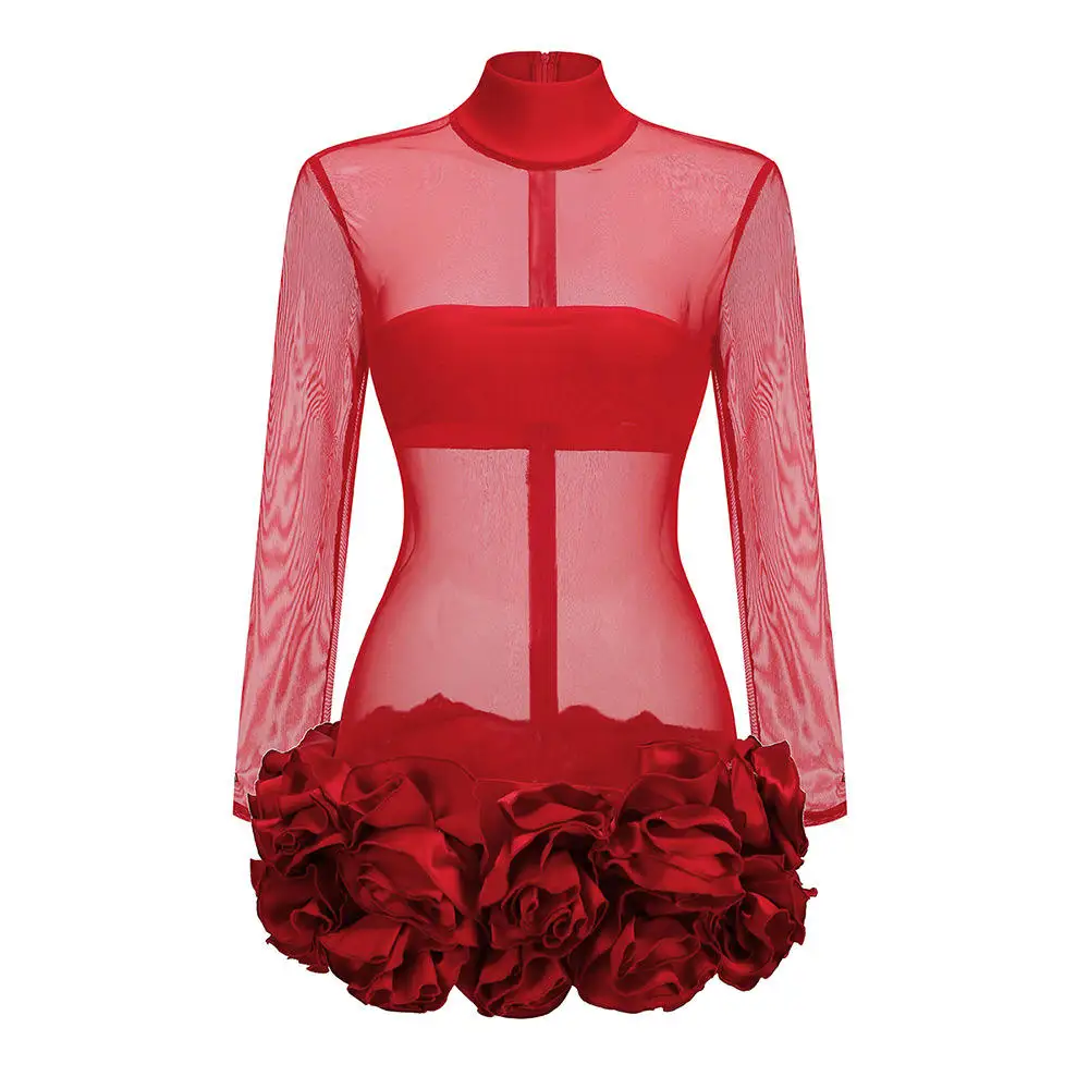 Product Name: New Arrival Summer Florals Rose Mini Dress for Women Sexy Party Dress Natural Waistline Feather Decoration for Valentine’s Day