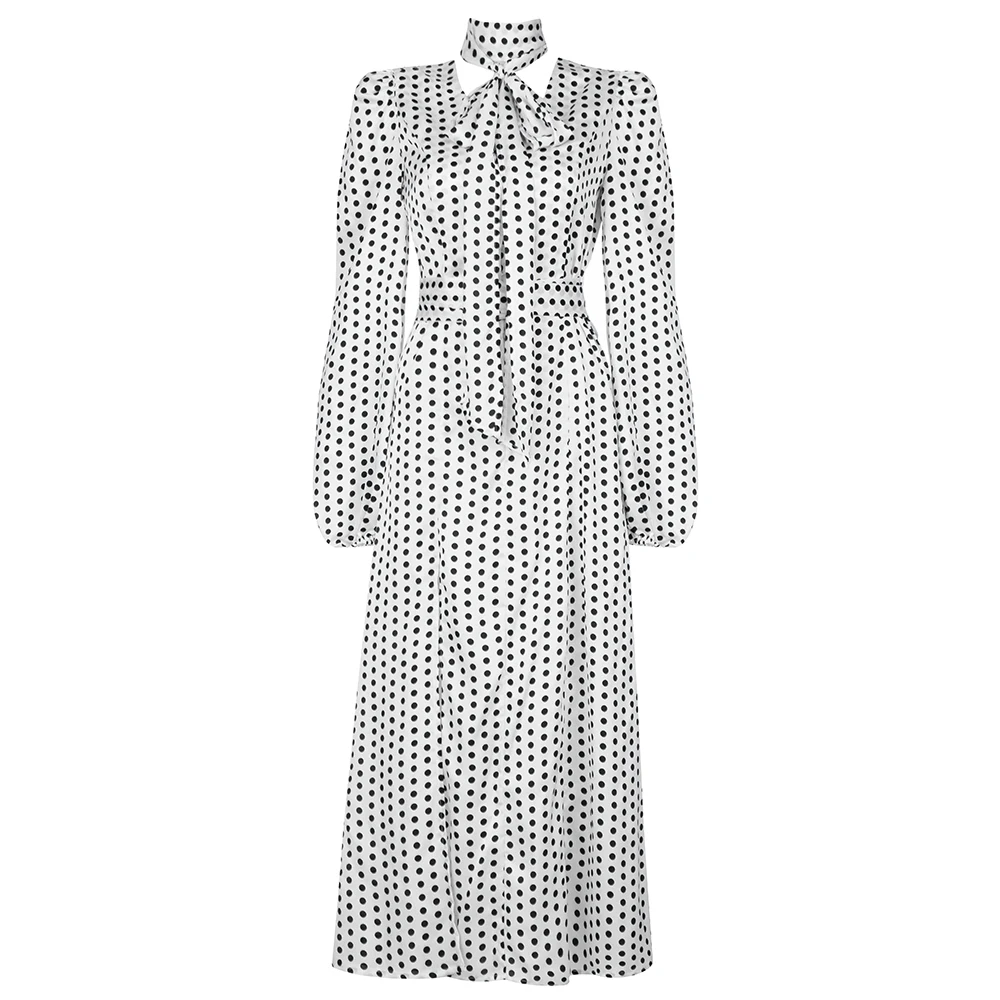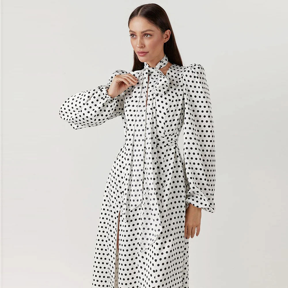 Product Name: New Arrivals Women Casual Dresses Dot Printed Dress Puffy Long Sleeve Elegant Dress