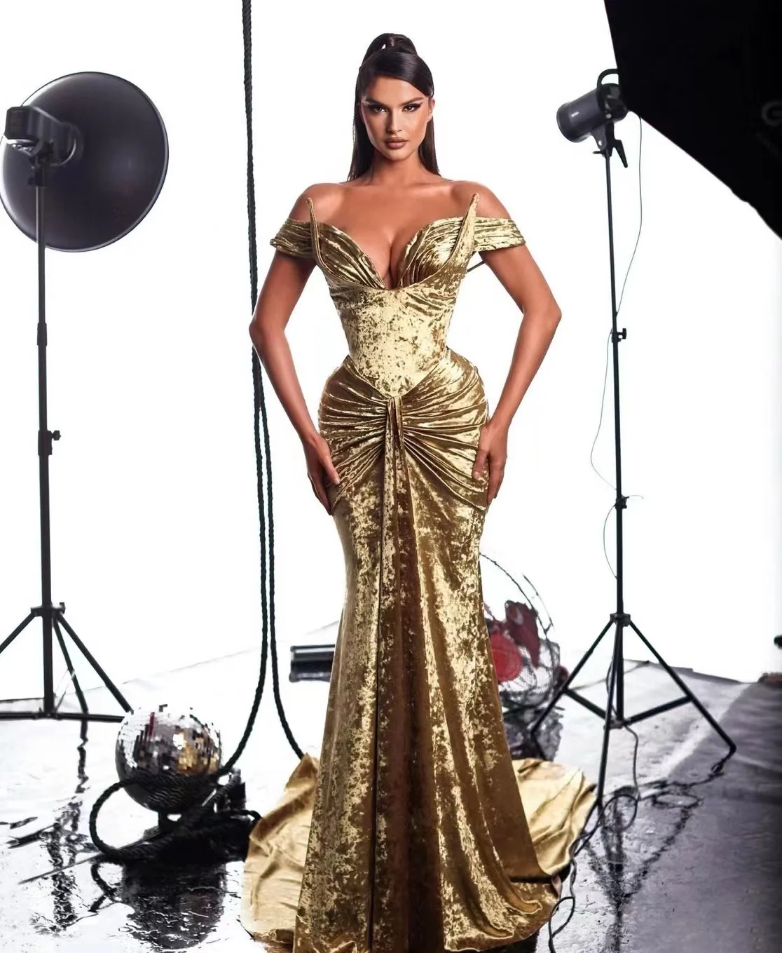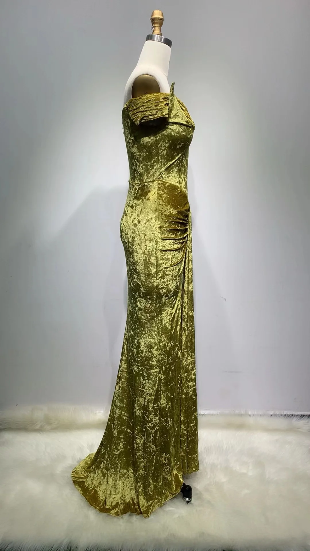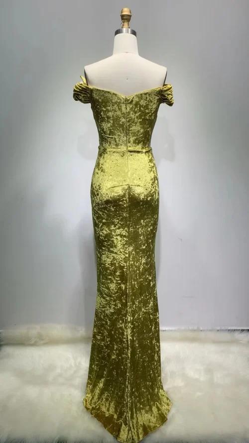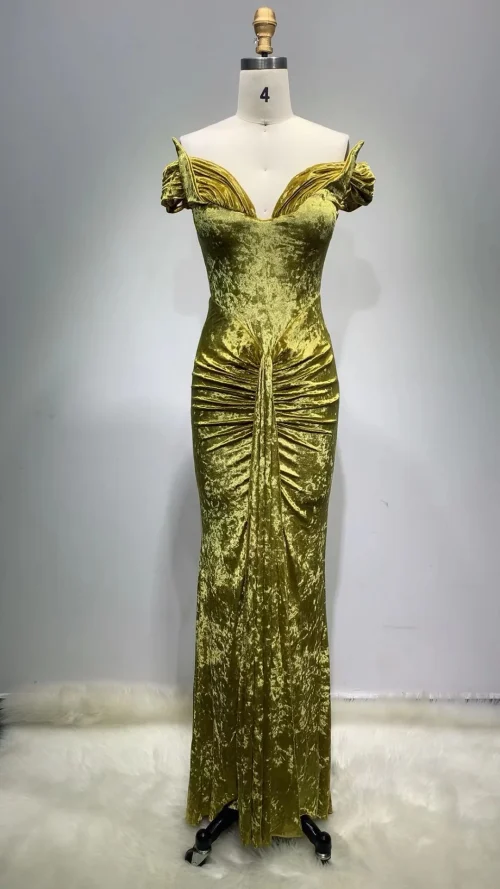 New Arrived Gold Clothing for Women Luxury Party Gown Velvet Sexy V Neck Sleeveless Long Evening Dinner Dress Elegant
