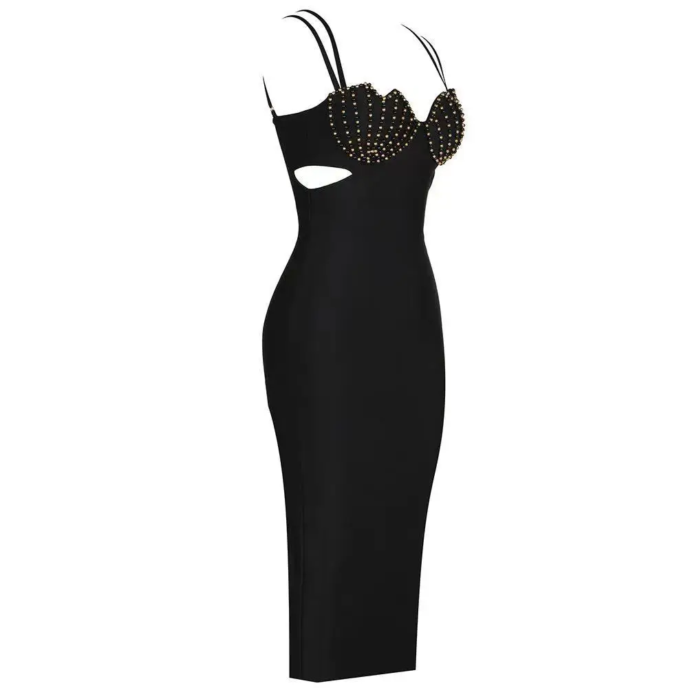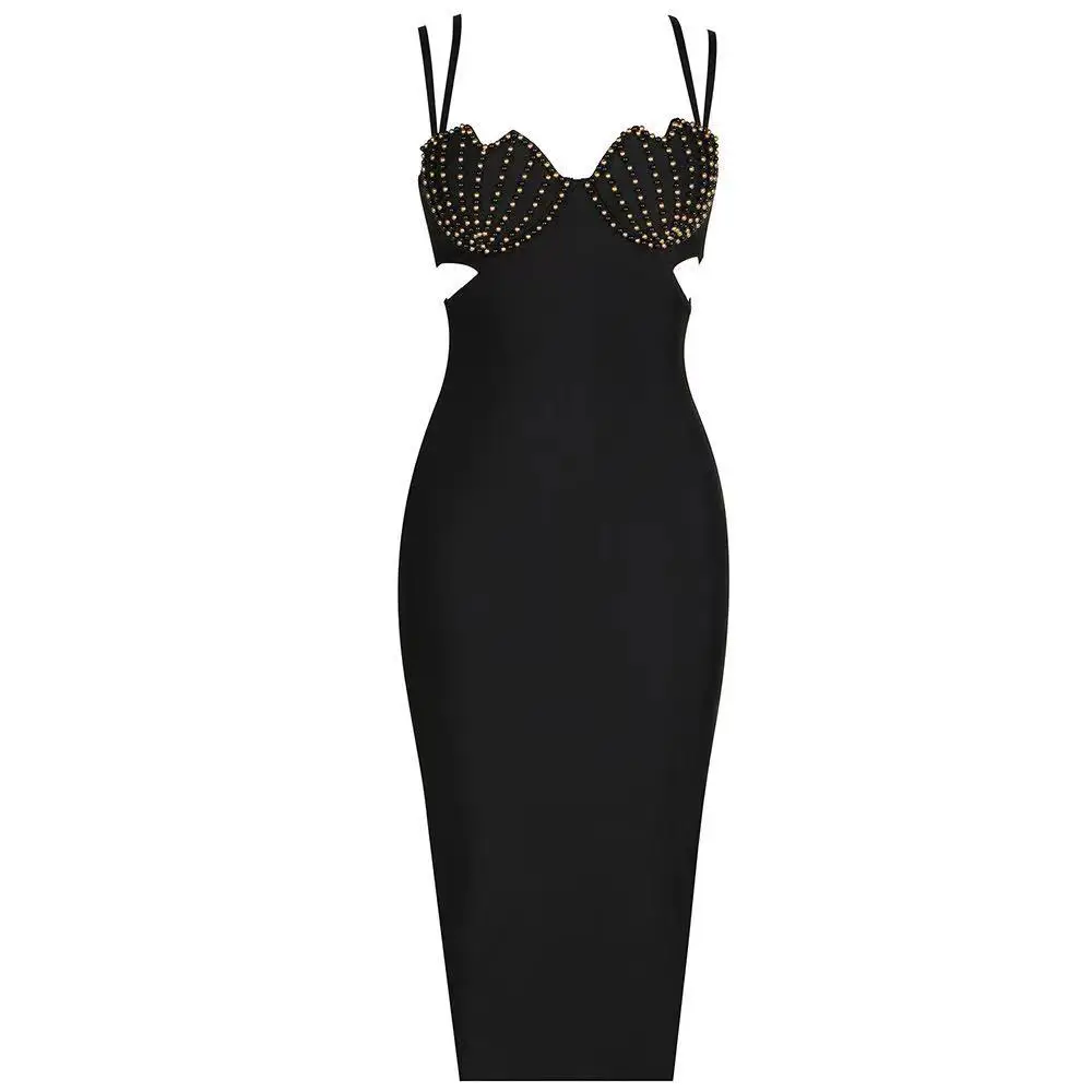Product Name: New Beaded Shell Hollow Sexy Sling Dress Solid Pattern Casual Style Summer Midi Dyed Front Washable