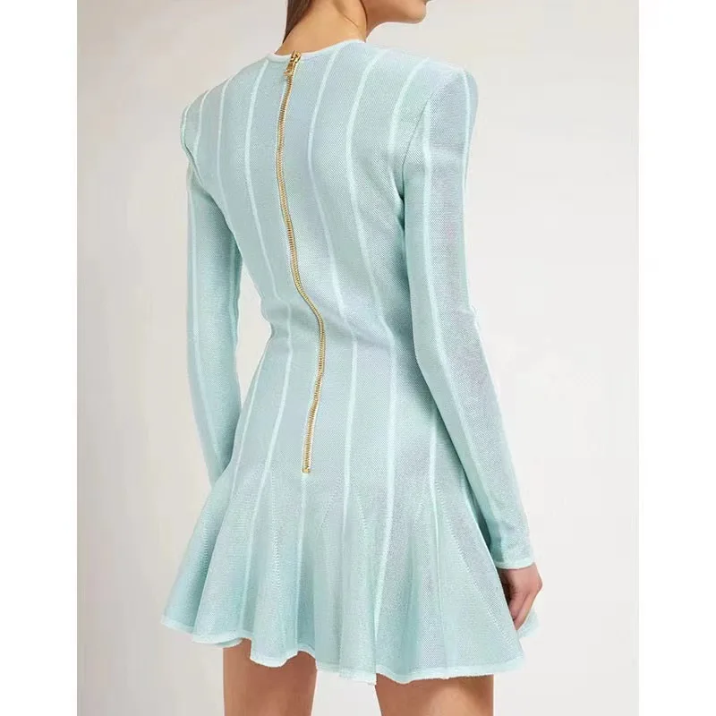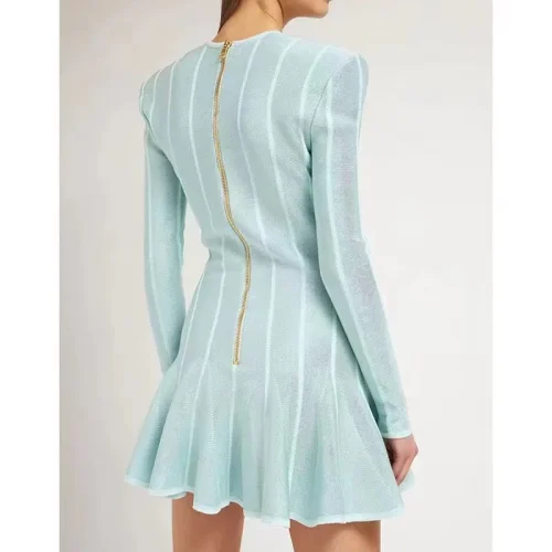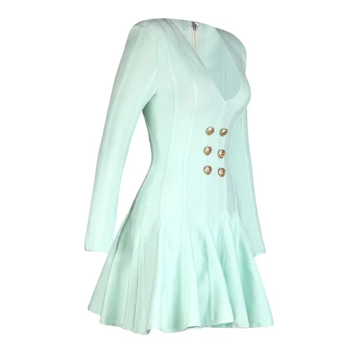 Product Name: New Collection Green Knitted Long-Sleeved V-Neck Dress Internet Celebrous Best Seller Solid Sexy Lion Buckle for Spring