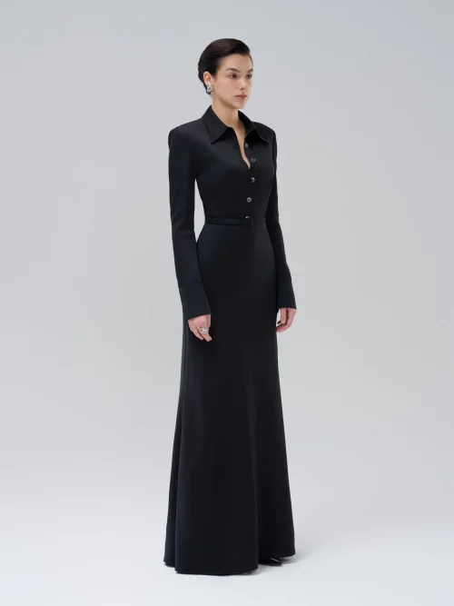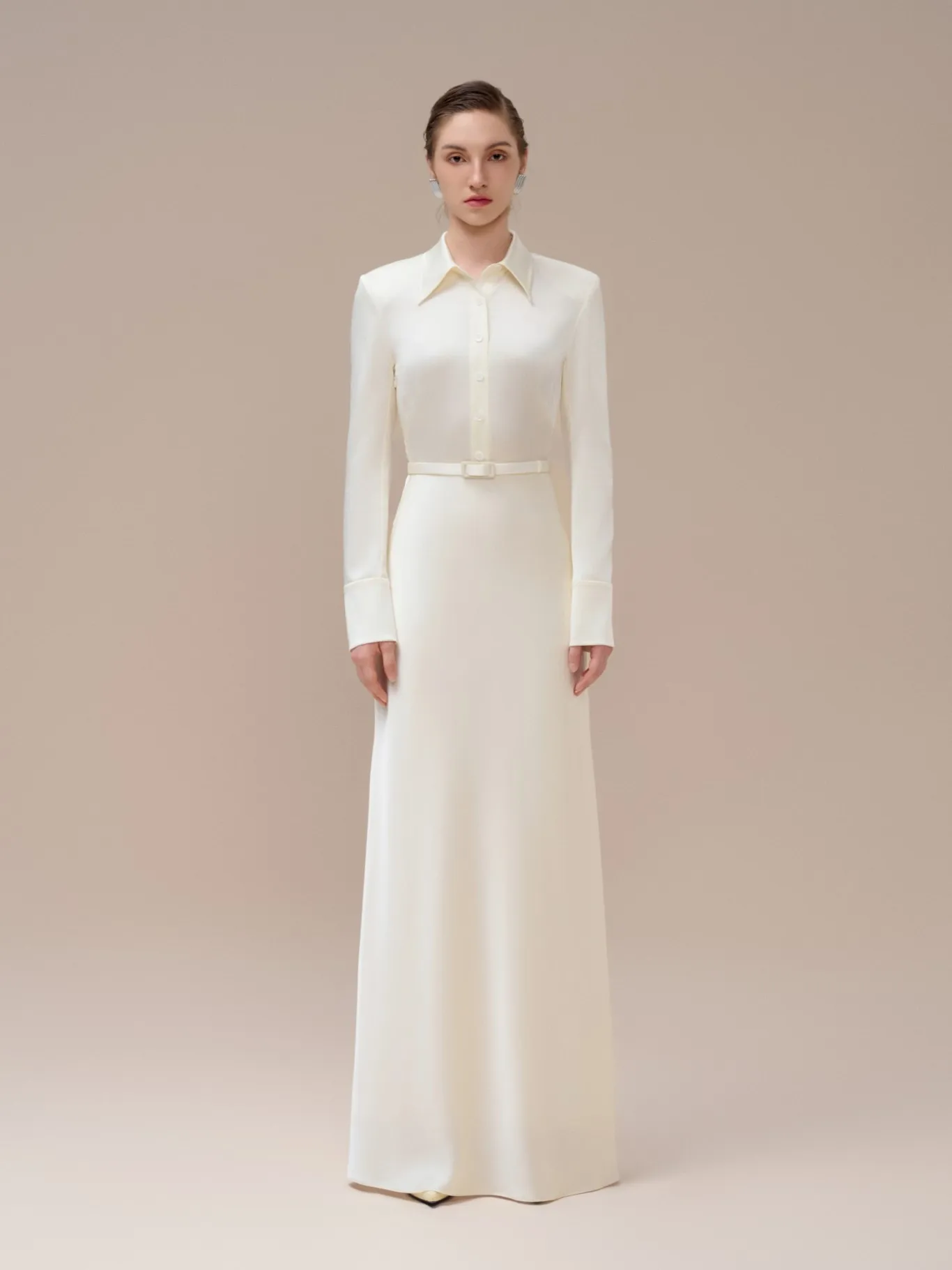 Product Name: New Design Black & White Women Casual Dresses With Belt AUDREY DAY DRESS Mison Satin Fabric Long Dress Elegant Women’s Clothing