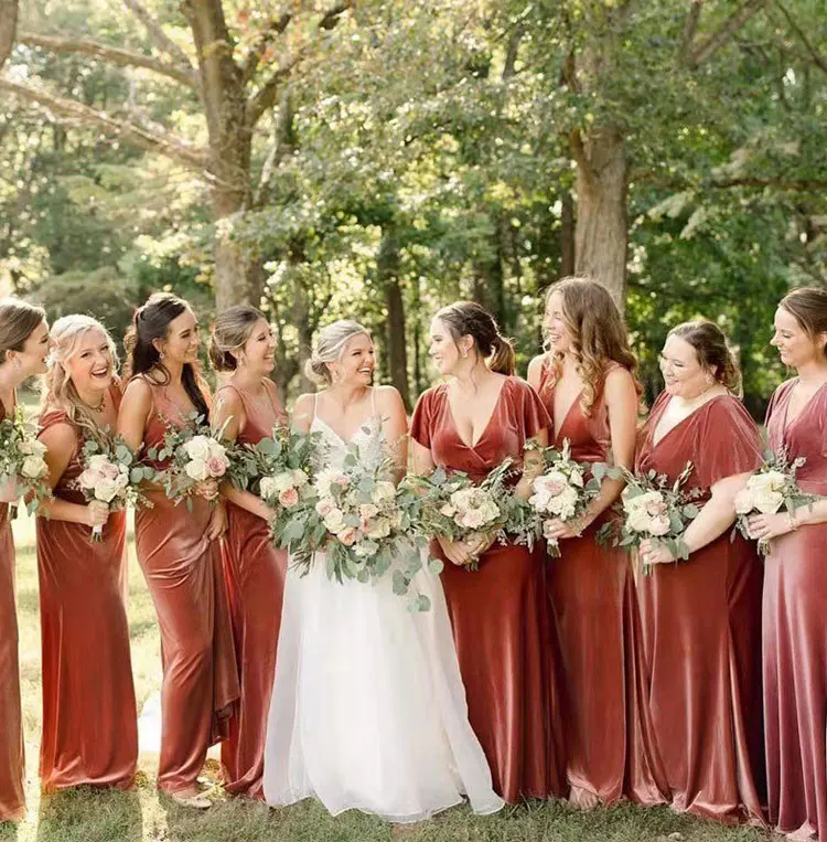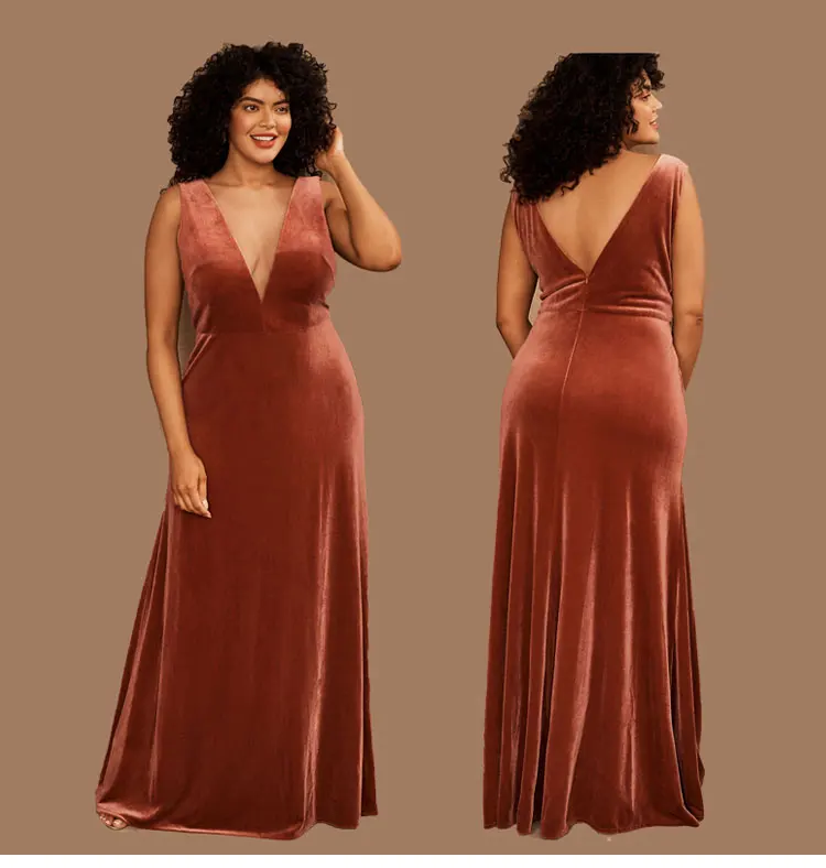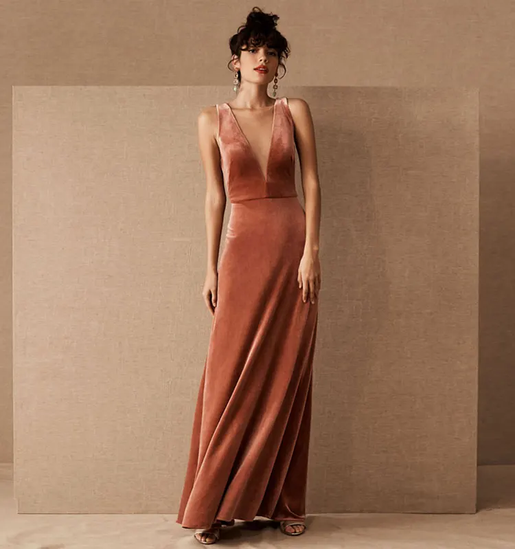Product Name: New Design Elegant Velvet a Line v Neck Short Sleeves Wedding Party Long Dress Bridesmaid Evening Dress Casual