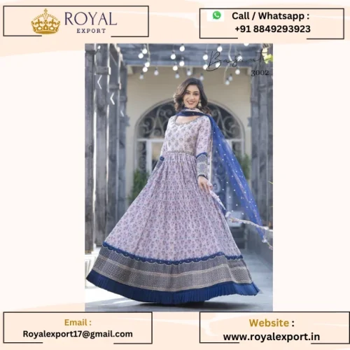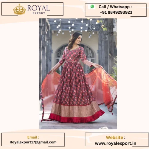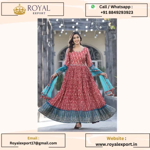 Product Name: New Designer Georgette Embroidery Work With Handwork Print Long Anarkali Gown Collection by Royal Export
