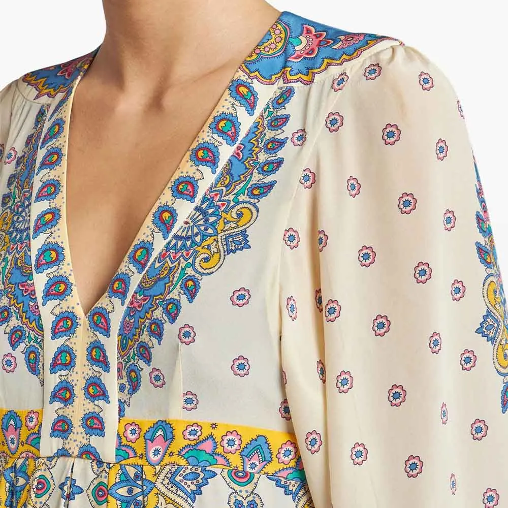 New Fashion Elegant Vintage Pattern Discharge Printing V-neck Long Wide Sleeves Maxi Dress