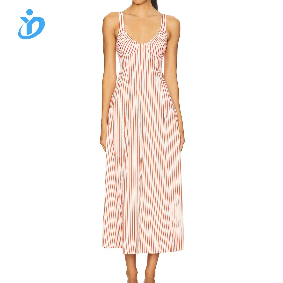 New Fashion Lady Elegant Women Clothing Elastic Neckline Striped Cotton Casual Party Work Out Sleeveless Midi Dress