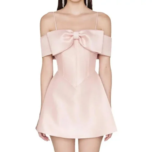 New Fashion off Shoulder Bow Backless Sundress Elegant Skirt Women Sweet Dress