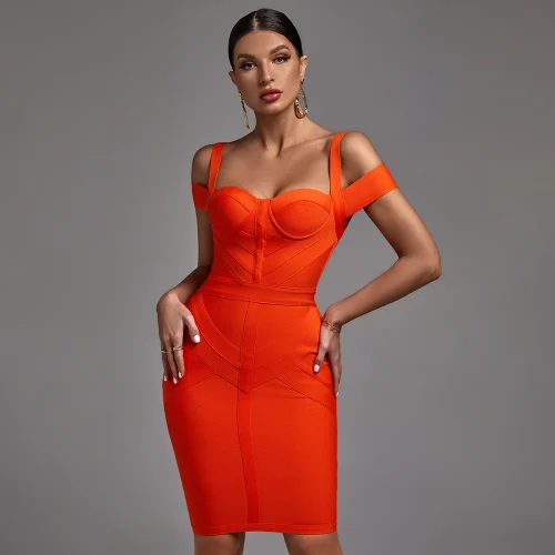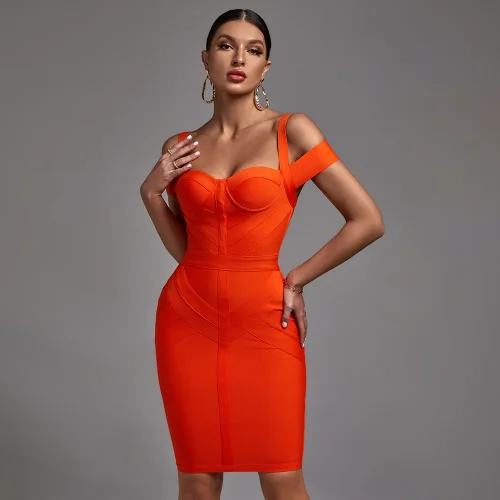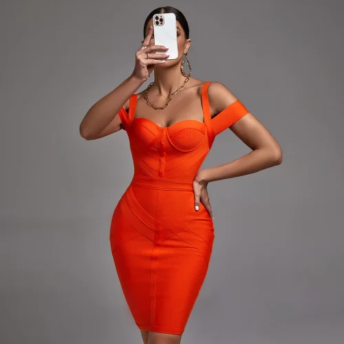 Product Name: New Fashion Summer Elegant Orange Zipper Slip Dress Low Cut Bodycon High Waist Knee-length Ladies Casual Dresses