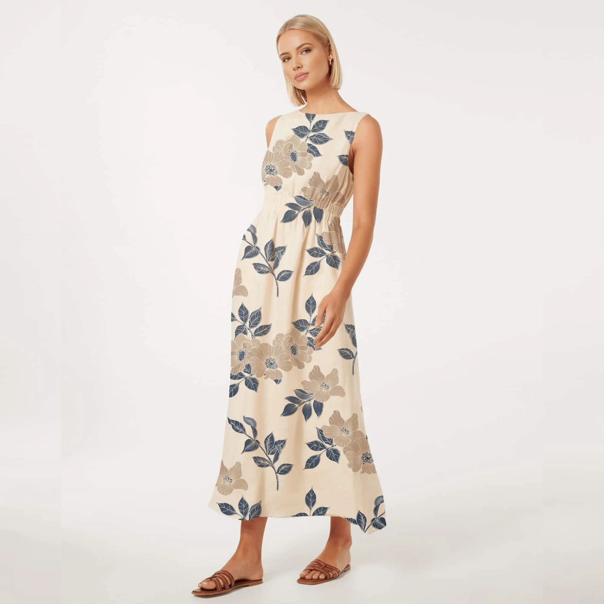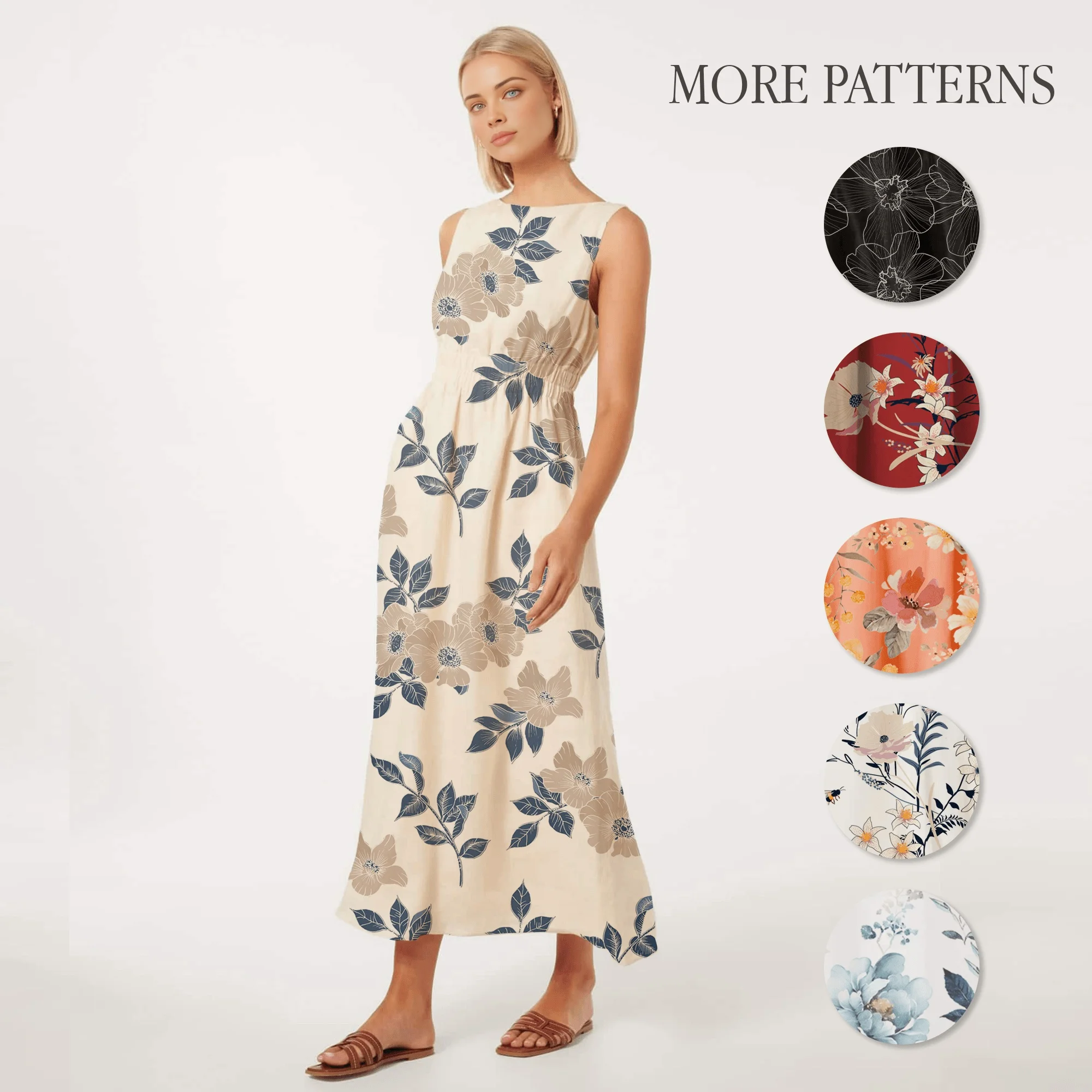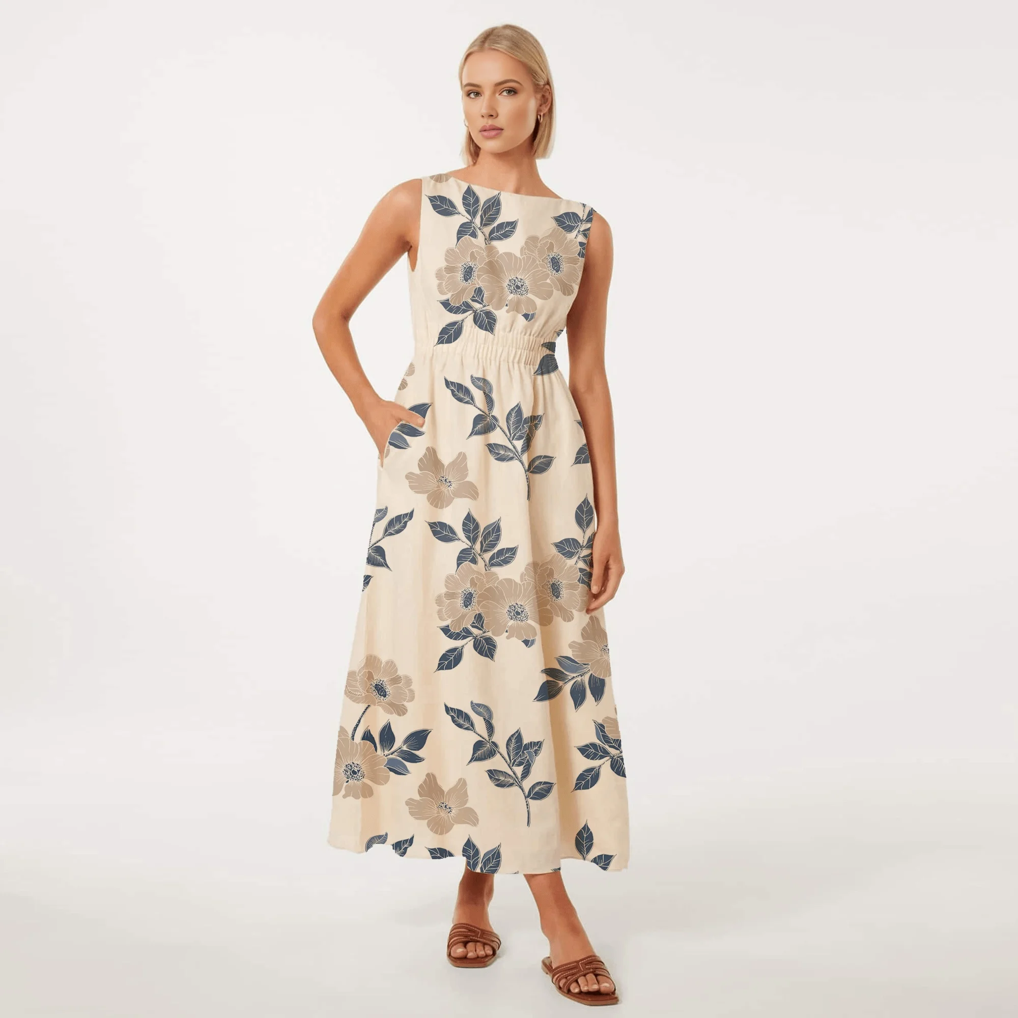 Product Name: New Fashion Summer Linen Long Casual Dress Women Casual Bohemian Floral Dress for Women