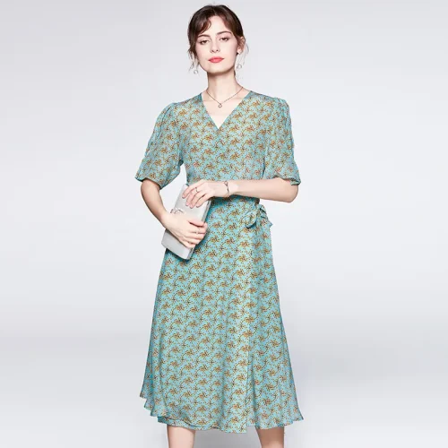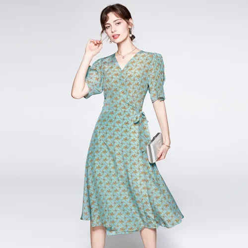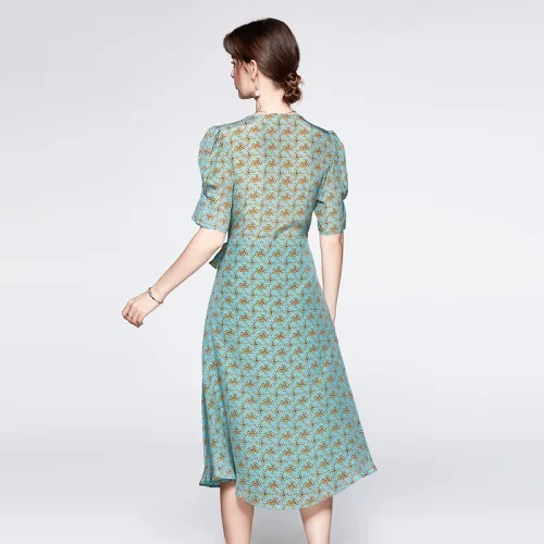 Product Name: New Fashion Women With Self Floral Print Ruffle Hem Spring Casual Women’S Dress