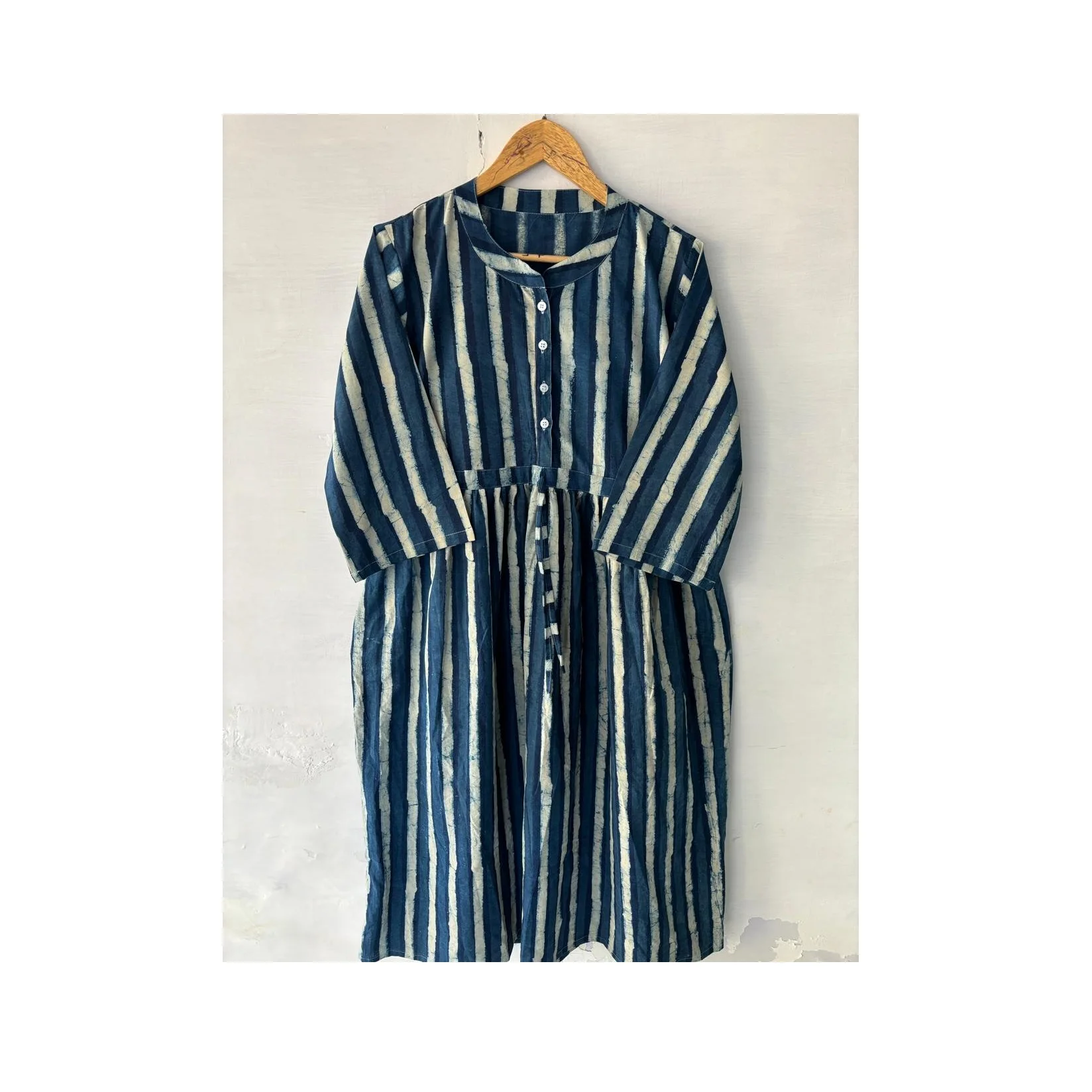Product Name: New Fashion Women’s Casual Dresses Soft Comfortable Full Sleeve V-Neck Midi Length 100% Cotton with Embroidery Print
