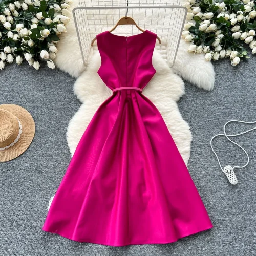 Product Name: New French Style Summer Elegant Sleeveless O-neck Midi Dress Cocktail Dress