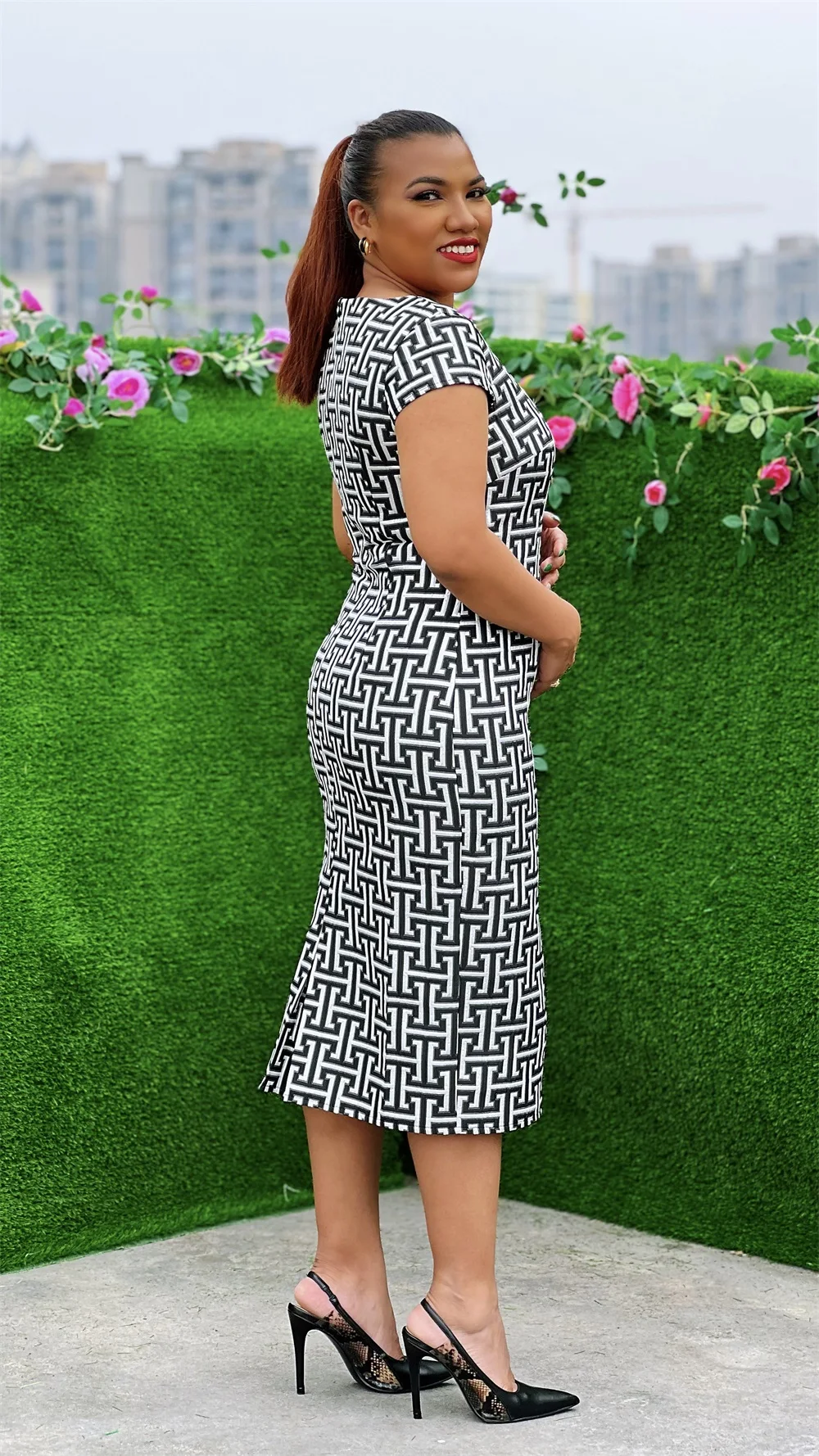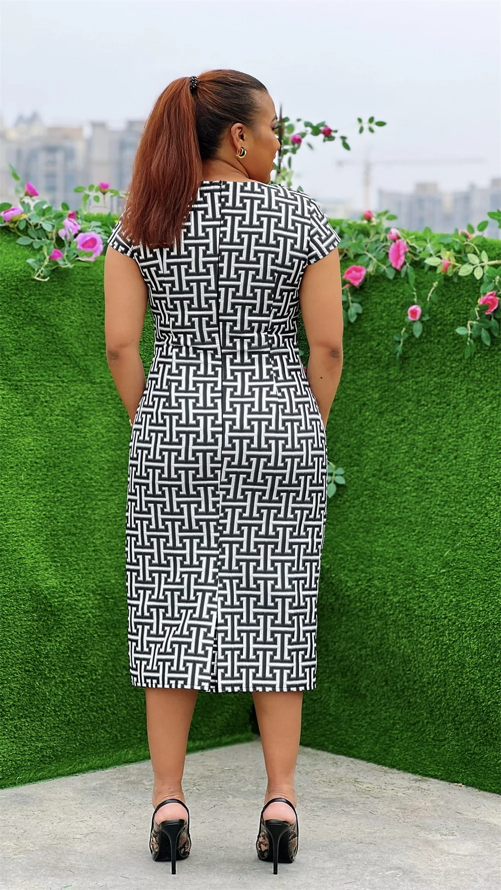 Product Name: New Ocasional Women Short Sleeve Casual Dresses Elegant Flora Church Mother Dresses Suit