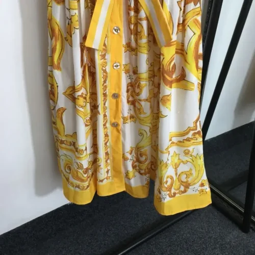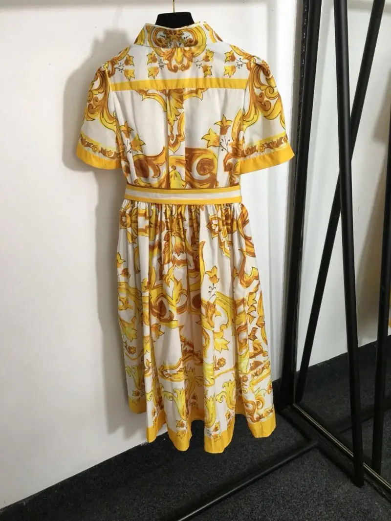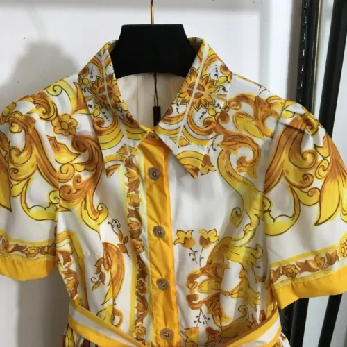 Product Name: New Retro Patterned Printed Lace up Waist Cinching Short Sleeved Shirt Dress