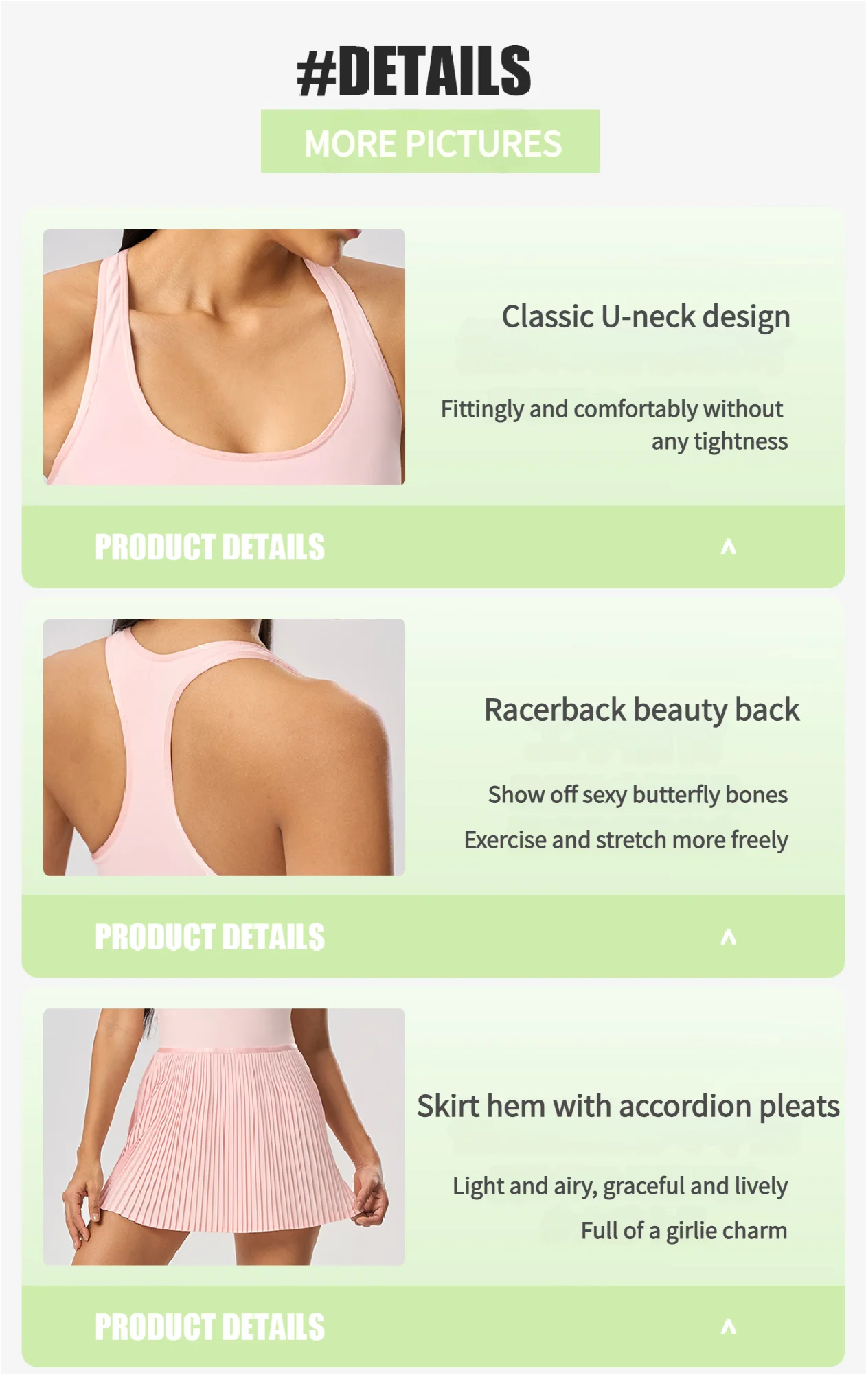 Product Name: New Sleeveless Racerback Crew Neck Athletic Dresses Women’s Workout Crop Tank Top Yoga Casual Outfits and Pleated Tennis Skirts