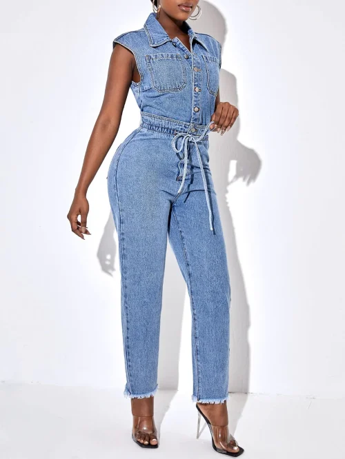 New Stylish Women’s Denim Jumpsuits Pockets Washed Jeans Rompers Plus Size Fashion Denim Jumpsuit