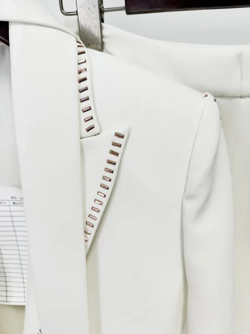 Product Name: Newest 2025 Lady Formal Workwear 2Pcs Solid Drilling Notched Long Sleeve Single Button Blazer Pants Suit With Scarf