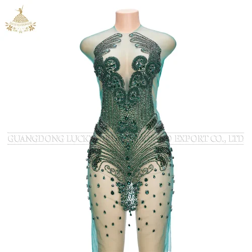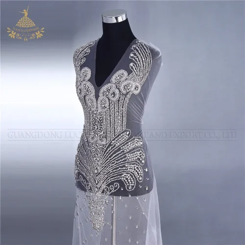 Product Name: Newest Black Crystal Bridal Applique Bodice Rhinestone Applique Dresses Sewing on Evening Dress DRA-518