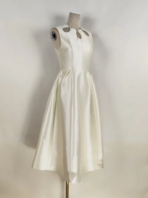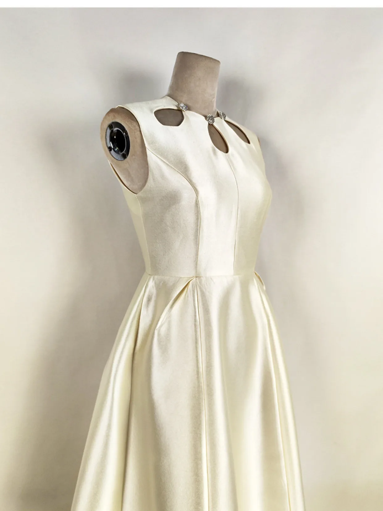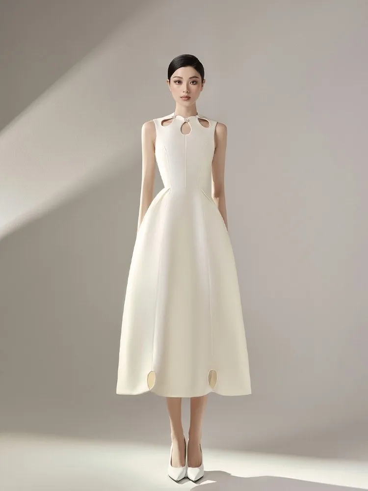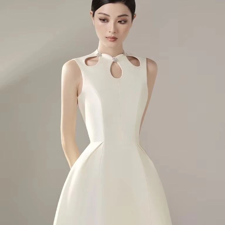 Niche Designer Elegant Long Dress for Spring Summer Female Sleeveless with Hollow Jeweled Decoration Polyester Natural Waistline