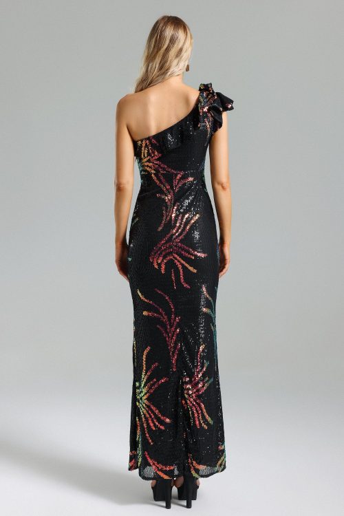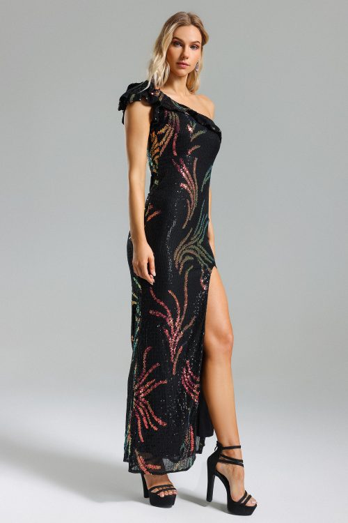 Nlia Sequins One Shoulder Slit Dress