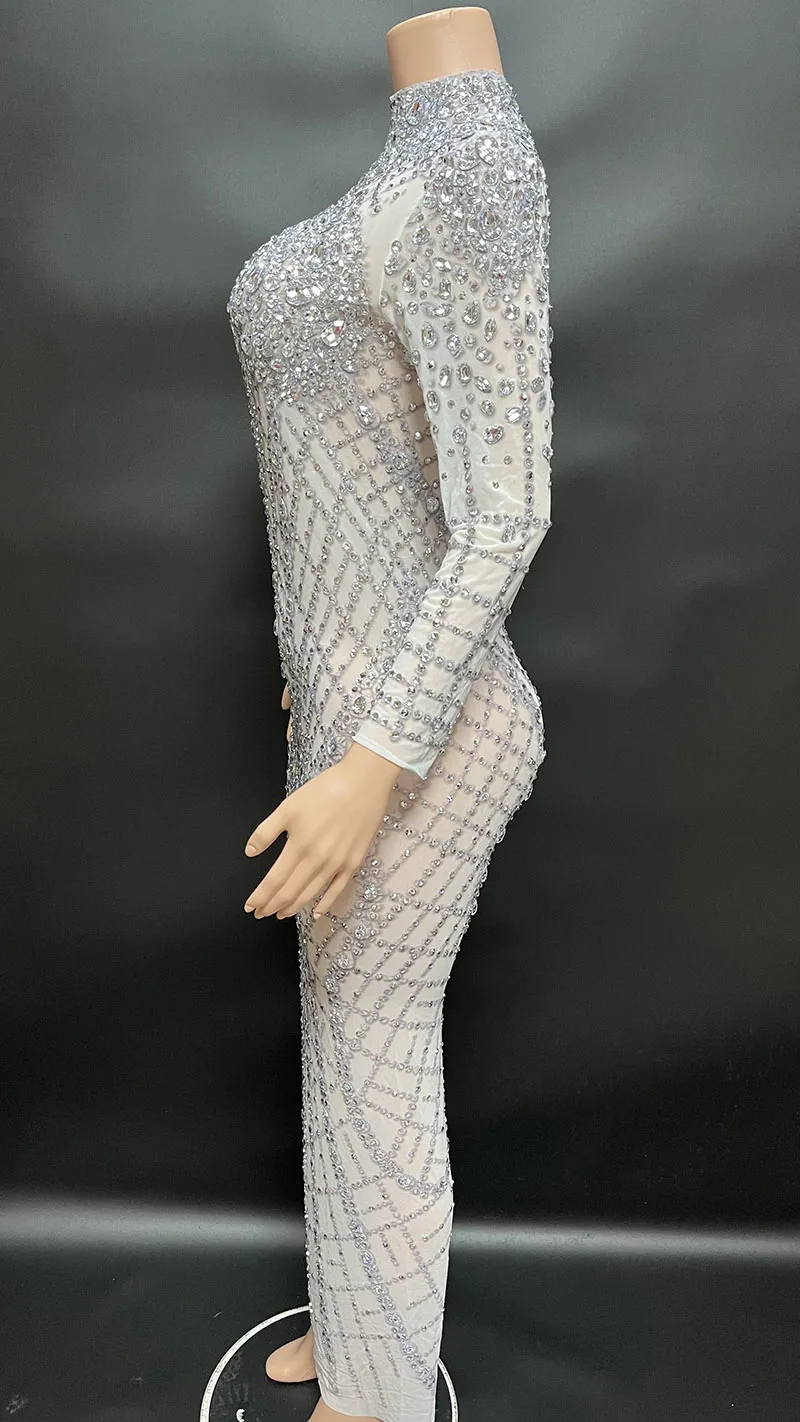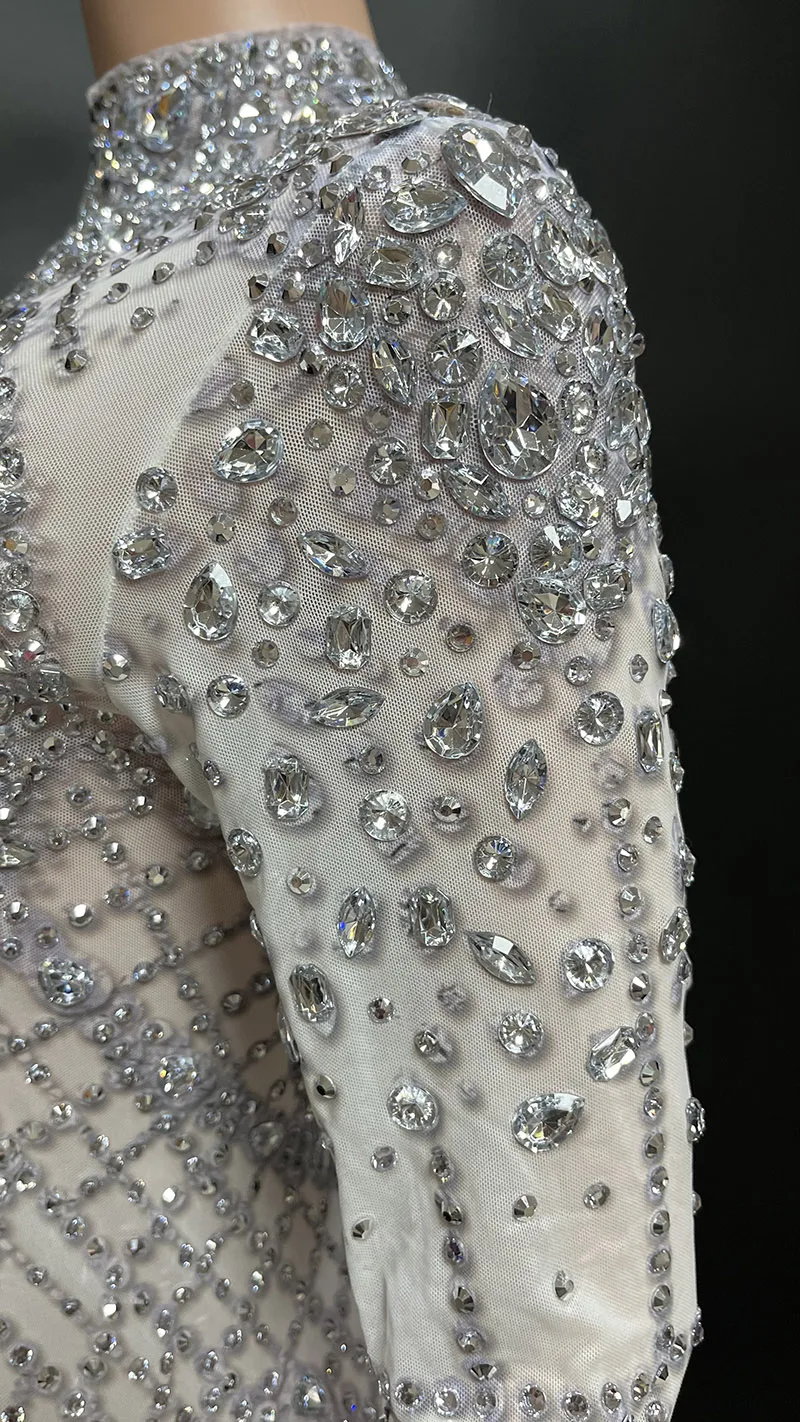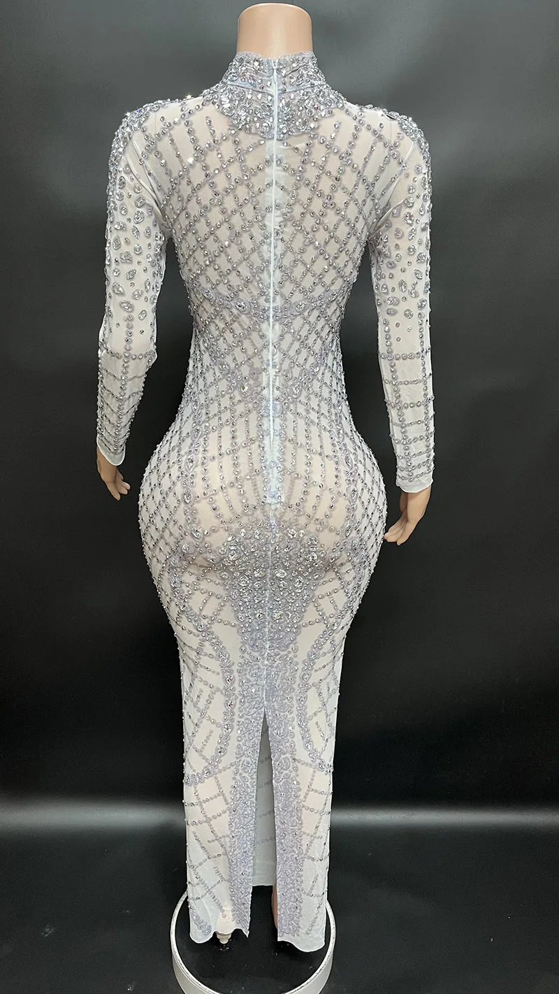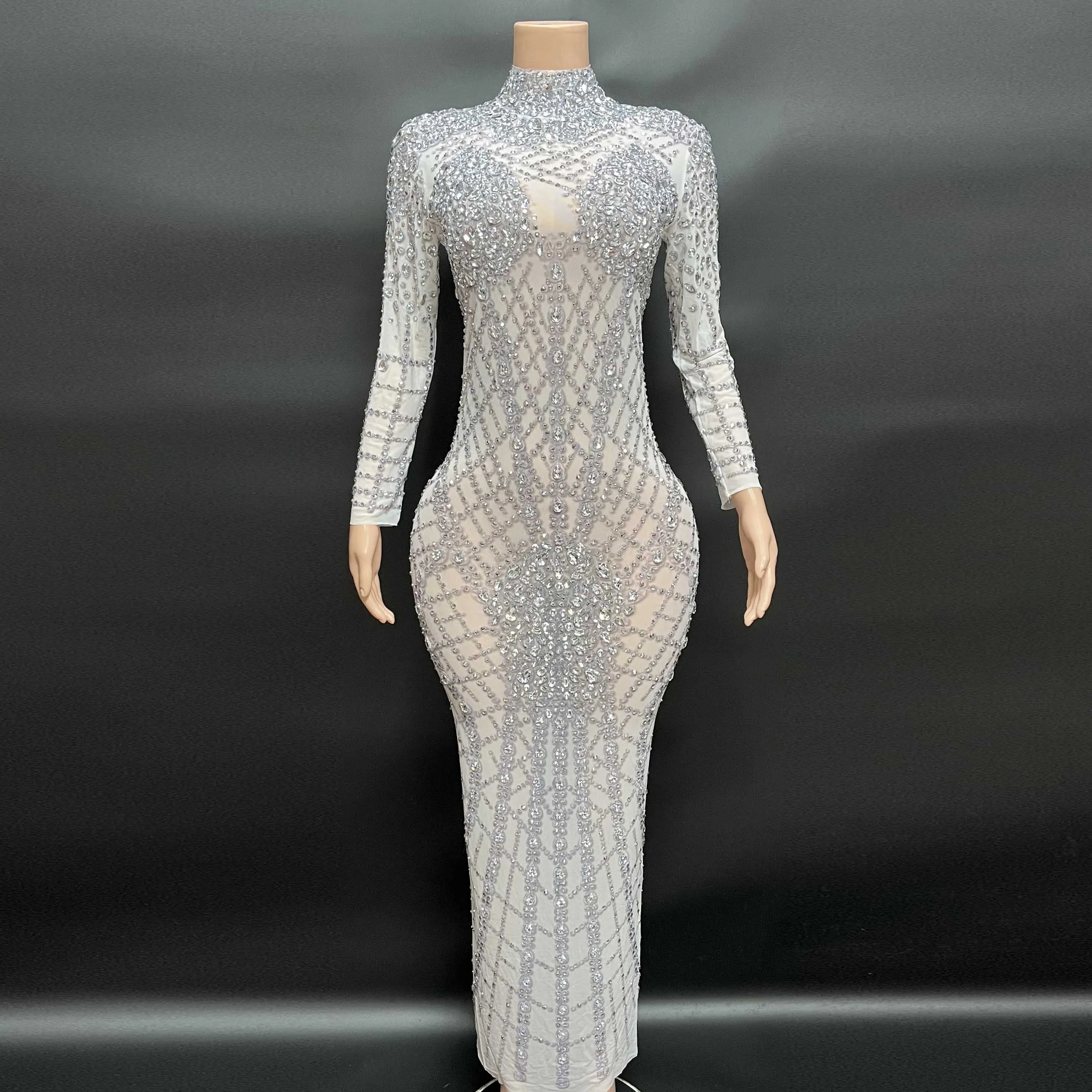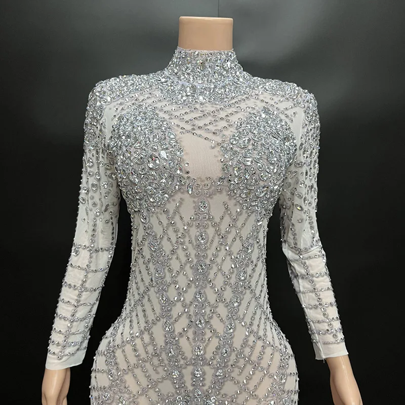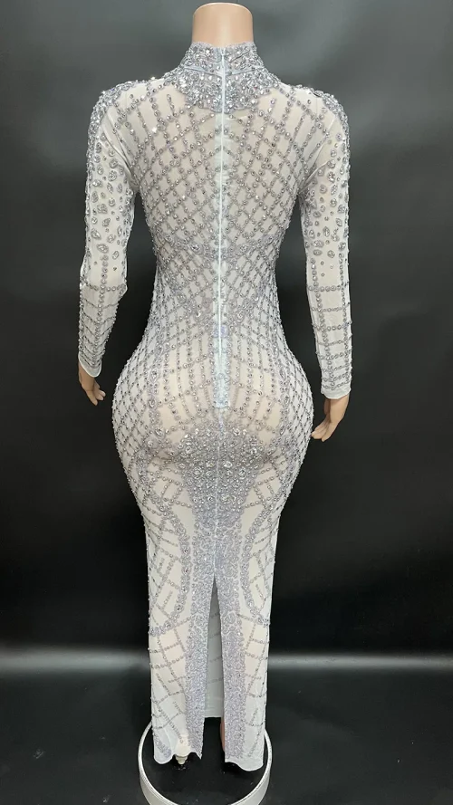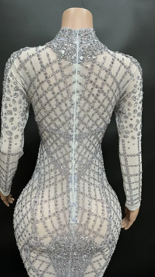 Product Name: NOCANCE 2023 New Arrivals Dazzling Diamonds High Neck Long Sleeve White Dress Party Dresses Women Evening Elegance for Party
