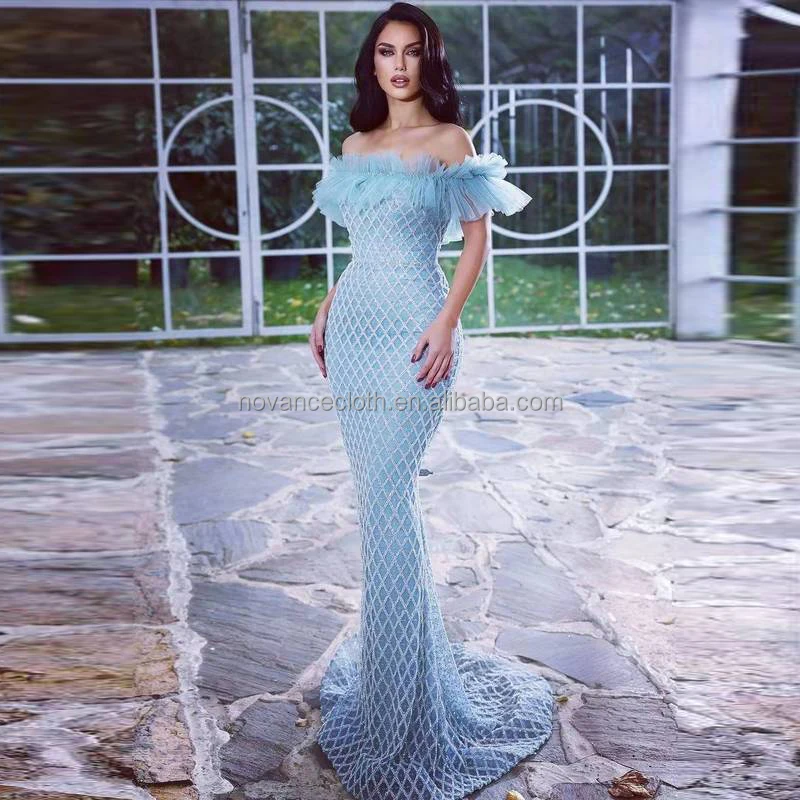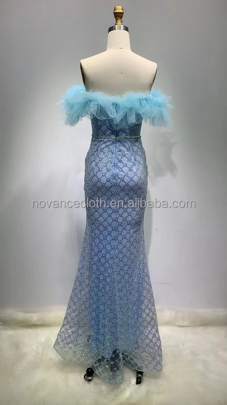 Product Name: Nocance New Arrivals Clothes for Ladies Blue Strapless Elegant Evening Dress Sequin Sexy Long Dress Vestidos De Novia Boda Civil