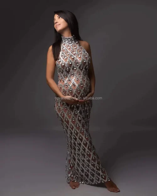 Product Name: NOCANCE Y2360 New Year 2023 Blingbling Diamonds Sequins Sexy Sleeveless Evening Gown Dress Elegant Maternity Dress Poshoot