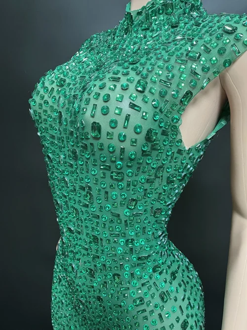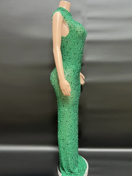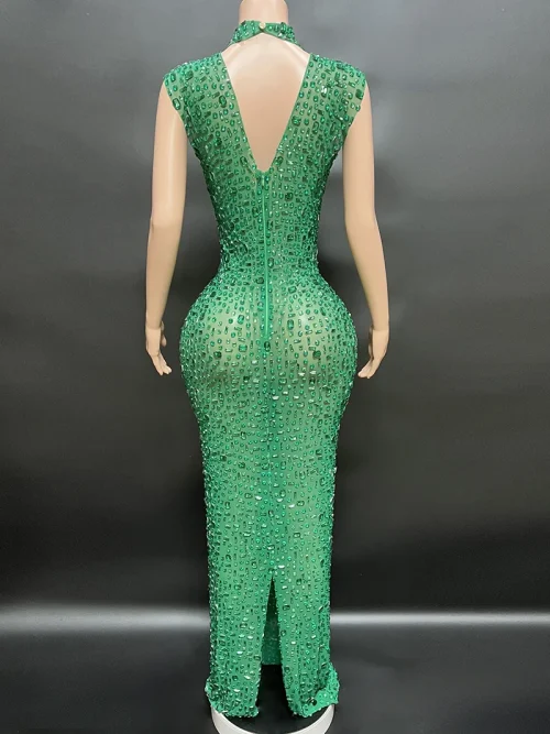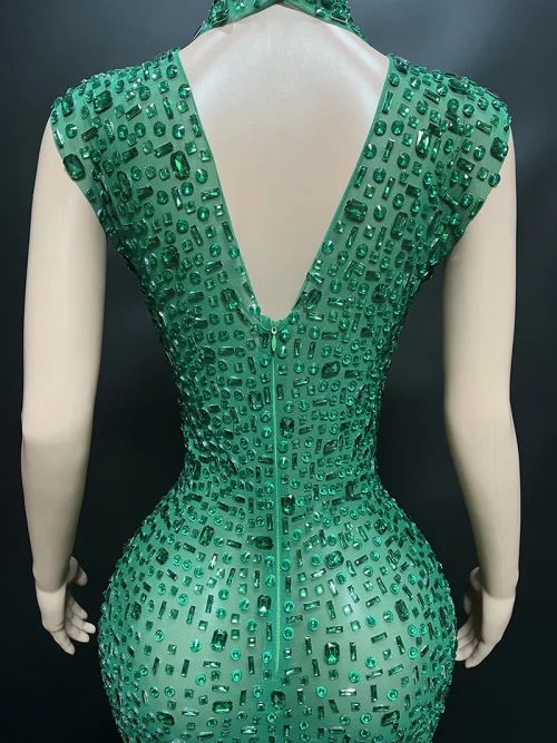 Product Name: NOVANCE Dropshipping Agent Sleeveless High Neck Shiny Green Sequin Dress Sexy See Through Long Dresses Women for Evening Party