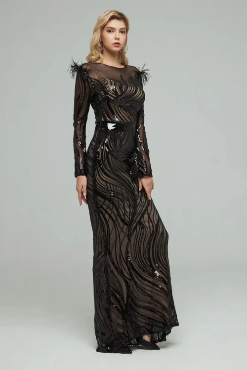 Product Name: Novance F2371 High Quality Bodycon Dress Womens Sexy Business Mermaid Feather Dress See Though Mesh Wedding Party Long Dress
