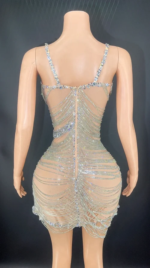Product Name: NOVANCE Fashion Clothes 2023 Women Sexy See Through Bling Tassels Dinner Gown Evening Dresses Ladies Short Prom Dresses