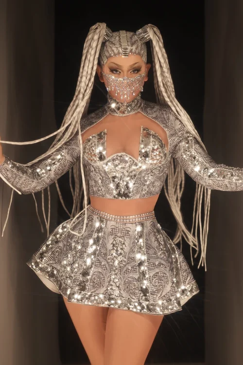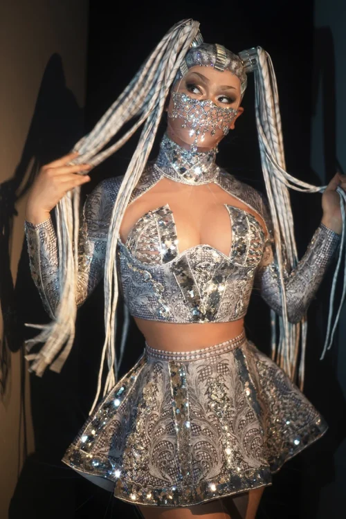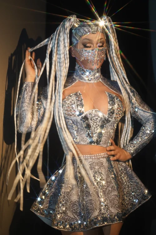 Product Name: Novance New Arrivals Women Clothing 2021 Mesh Tassel Transparent Crystal Dress Evening Luxury Dress Showgirl Costume