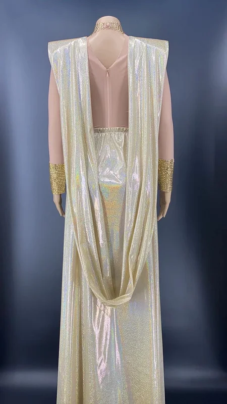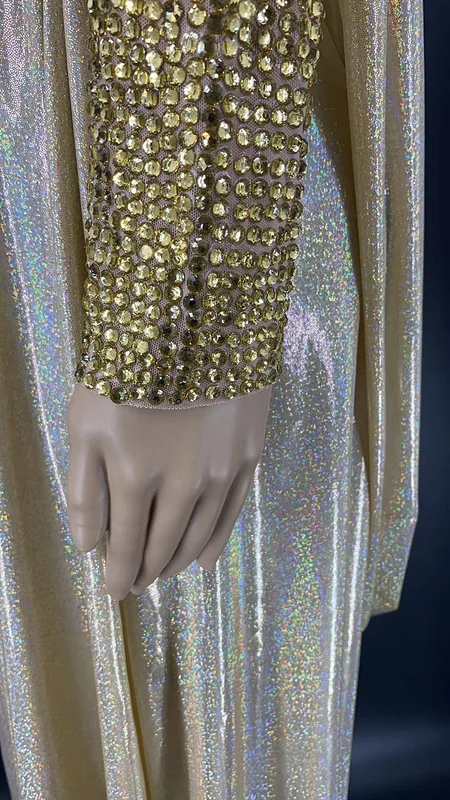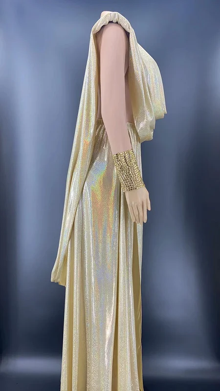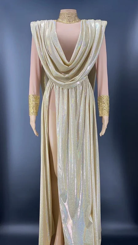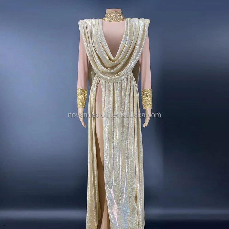 Product Name: NOVANCE Plus Size Spring Clothing 2022 Pleated High Split Sexy Diamond Goddess Design Dresses Champagne Color Evening Dress