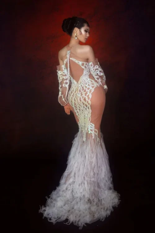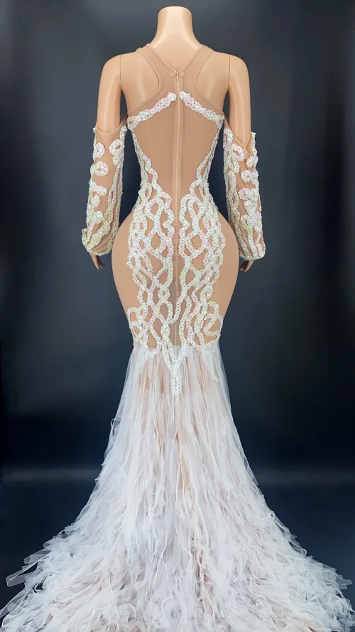 Product Name: Novance Spring 2021 Designer Perspective Mermaid Wedding Dress Maid Stage Costumes for Singer See Through Sequin Evening Dresses