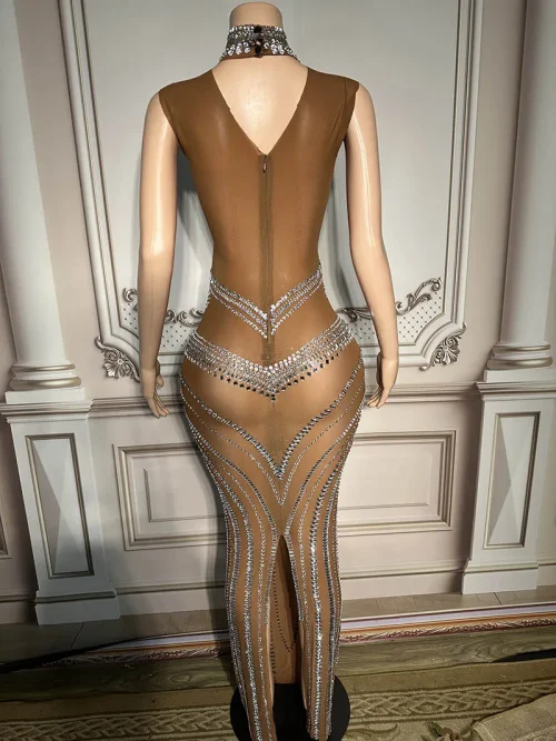 Product Name: NOVANCE Women Clothing 2023 High Neck Sexy See Through Sleeveless Brown Dress Elegant Prom Dresses for Evening Party Ball Room