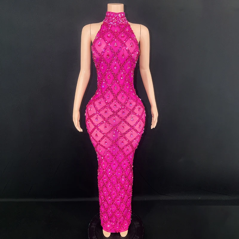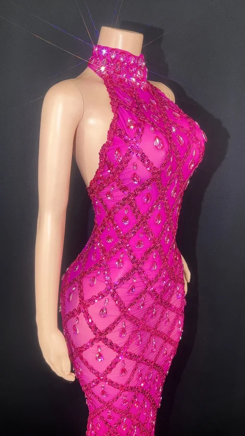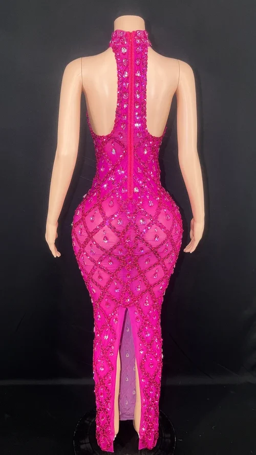 Product Name: NOVANCE Women Spring 2023 New Arrivals Rose Red Shiny Rhinestones Sexy Dinner Dresses Women Evening Elegance pink Evening Dress