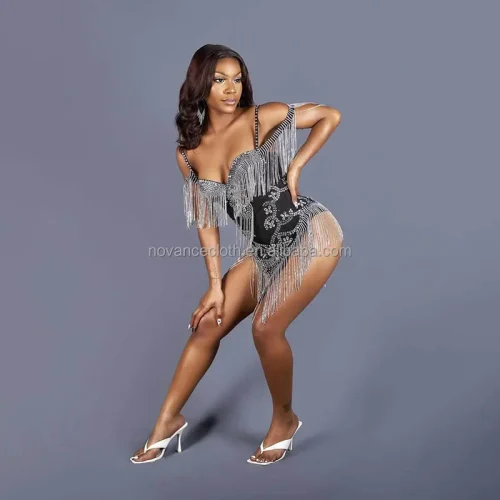 Product Name: Novance Y1838-B Summer Clothes for Women 2022 Sexy Crystal Tassel Summer Night Club Dress Perspective Plus Size Women Prom Dress